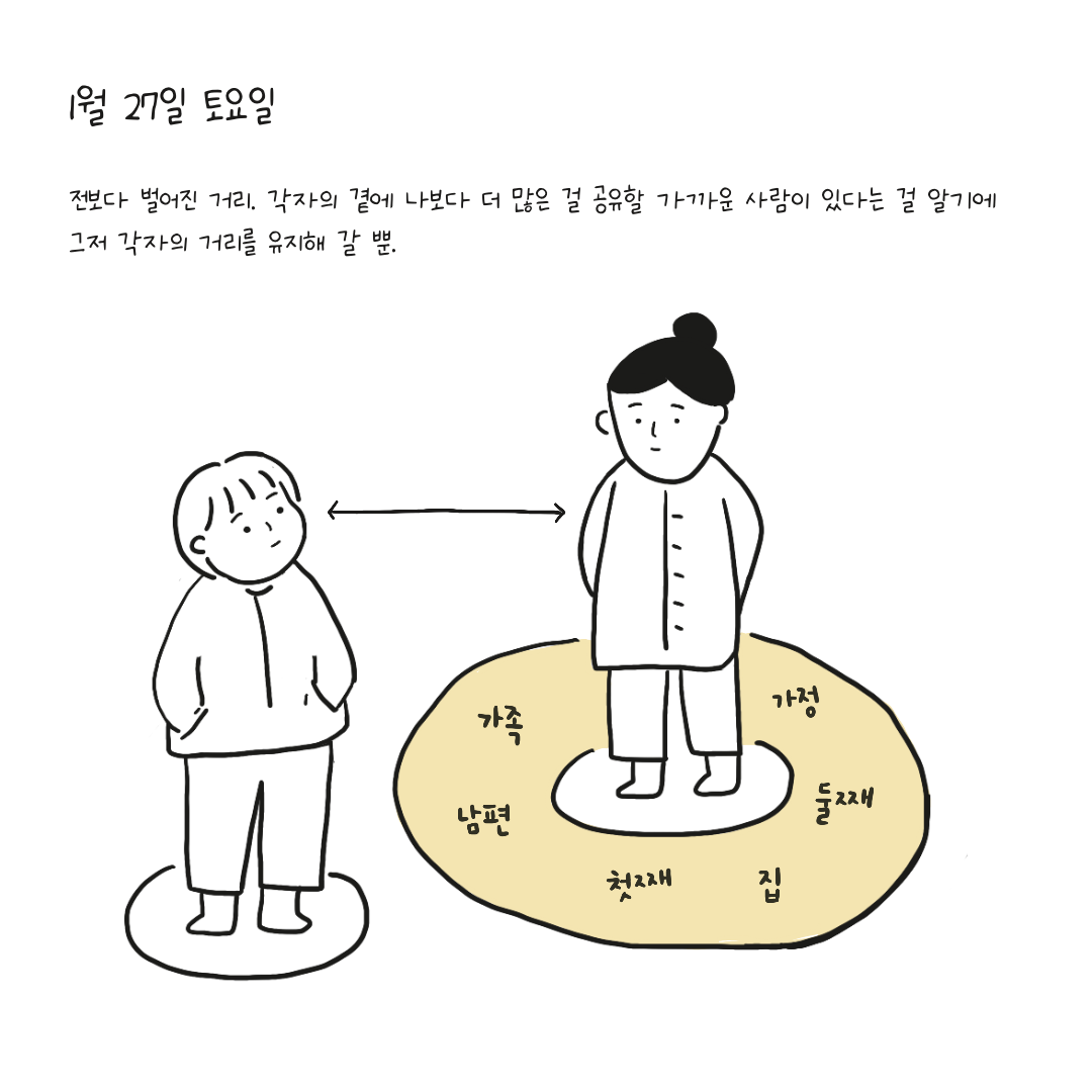 각자의 곁에 나보다 더 많은 걸 공유할 가까운 사람이 있다는 걸 알기에 그저 각자의 거리를 유지해 갈 뿐.