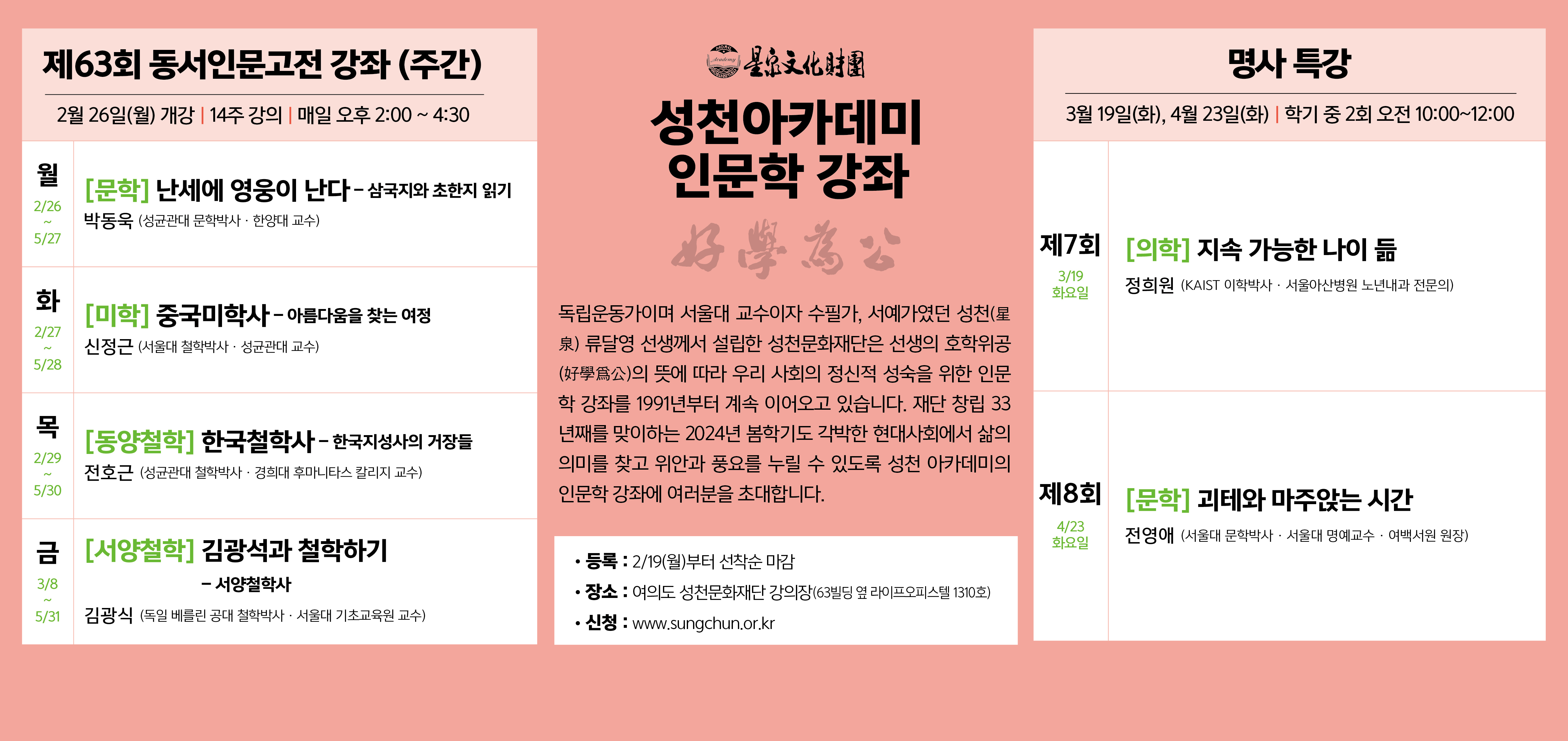 2/26 ~ 5/27. 매주 월요일 오후 2:00-4:30