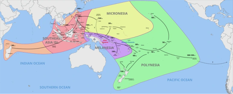 거기서 다시 섬에서 섬으로 여러 집단이 다양한 방향으로 옮겨간 끝에,