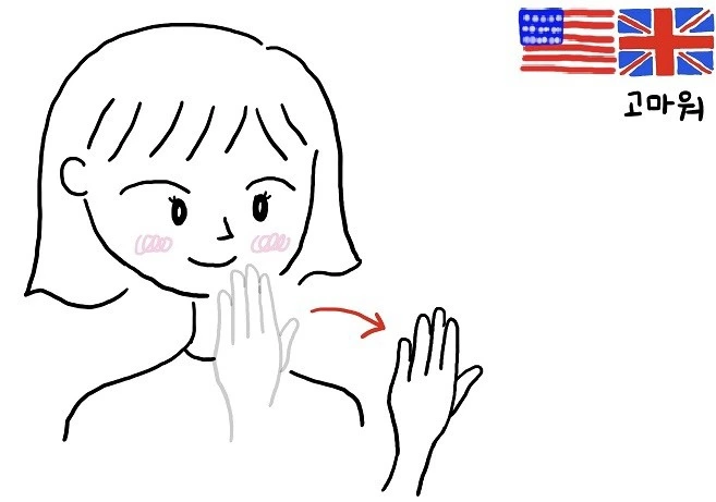 미국수어의 '고맙습니다'는 위 그림과 같이 표현한다.