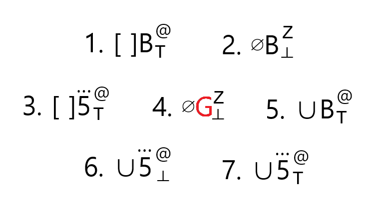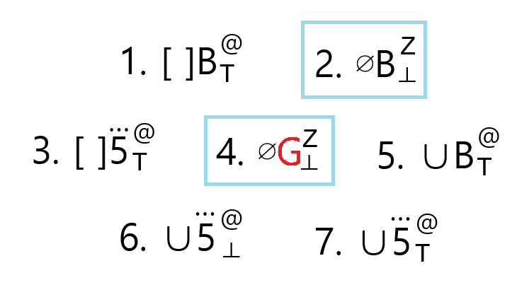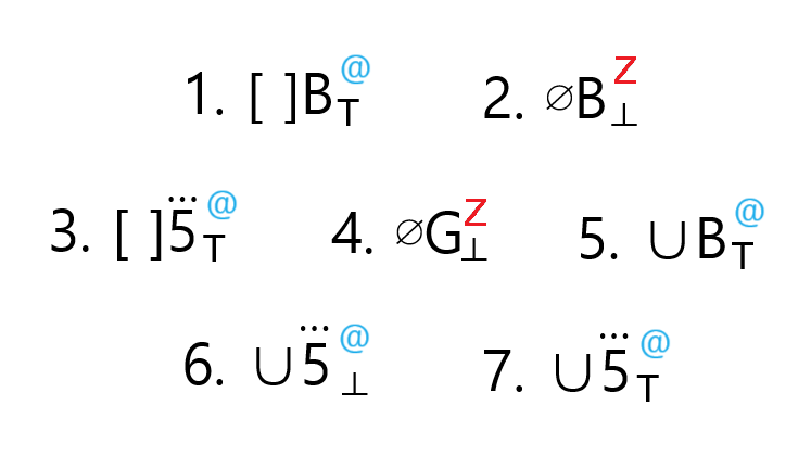 한편 2번과 4번의 왼쪽 부분에 있는 'Ø'는 움직임을 나타내는 기호가 아니다.