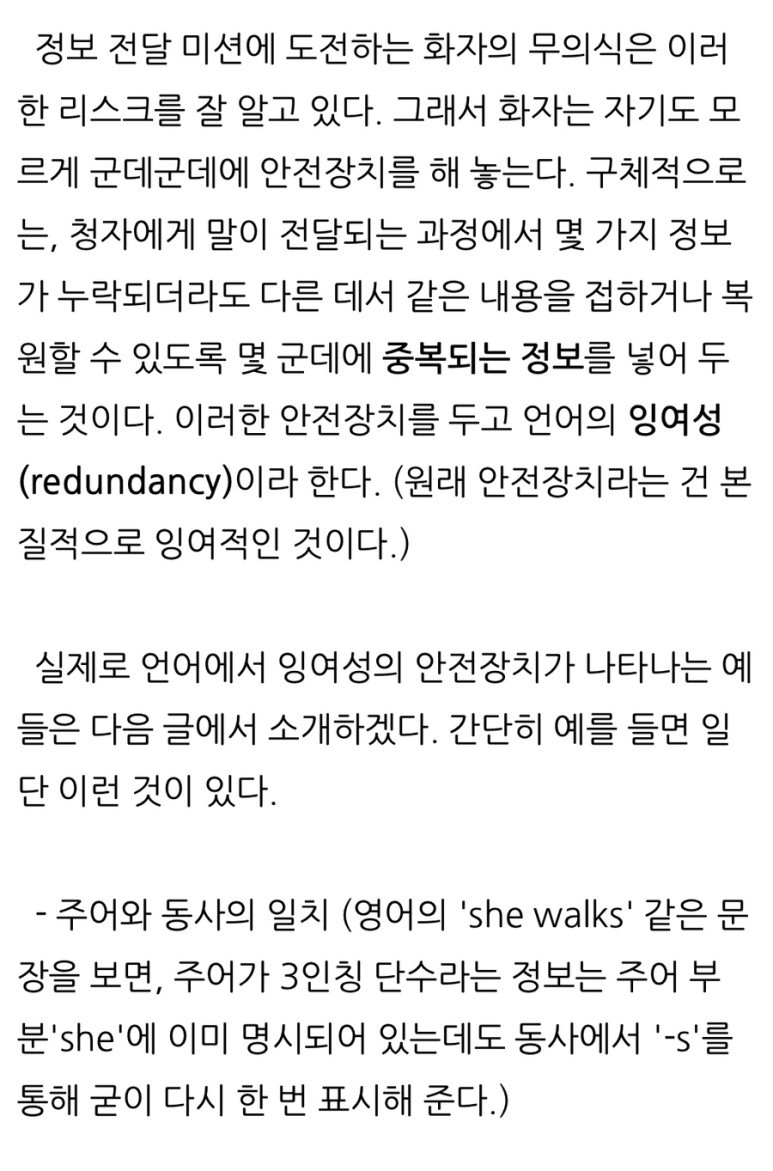 즉 서술어에 나타나는 주어의 인칭수 정보는 의사소통을 성공시키기 위한 하나의 안전장치이고, 이런 안전장치가 부착되어 있는 데에는 다 기능적인 동기가 있는 것이다. (기능주의 언어학!)