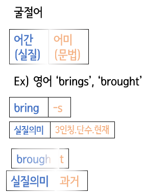 brought는 실질 의미('가져가다')를 나타내는 어간이 어디이고 문법적 의미('과거')를 나타내는 어미가 어디인지 딱 잘라 말하기가 어렵다.