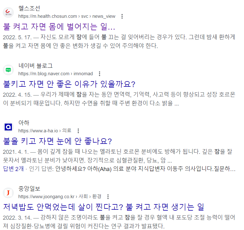 불을 끄지 않고 잠을 자면 당뇨병, 비만, 심혈관질환의 위험이 증가한다고 하네요~