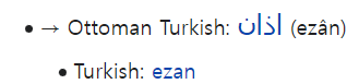 처음에는 'adhān 이 '아잔'이 된 까닭이 이 단어가 일본어를 거쳐 들어왔기 때문인가 했다.