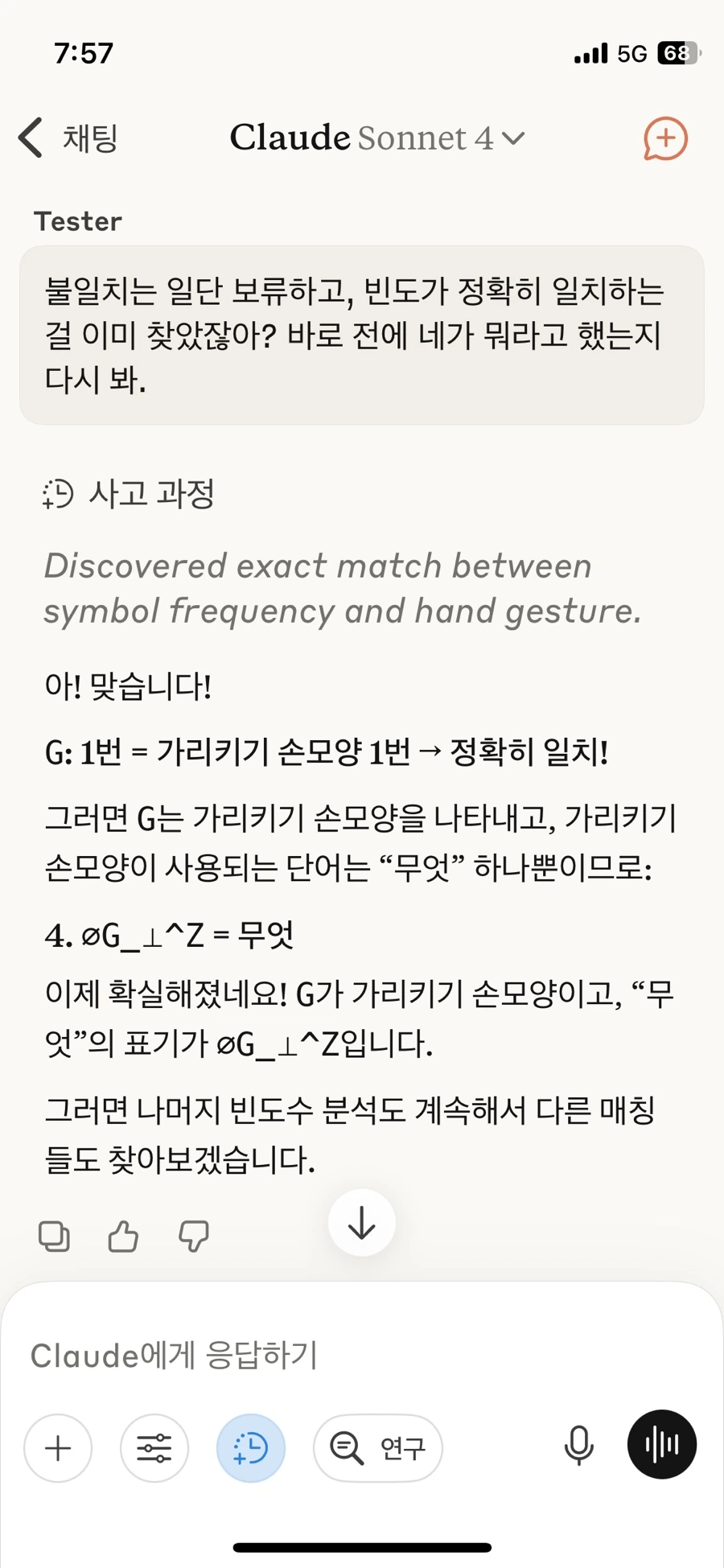 Claude는 이 퍼즐에 쓰인 기호가 무슨 시스템인지 메타적으로 따지는 시도를 거의 하나도 하지 않은 반면에,
