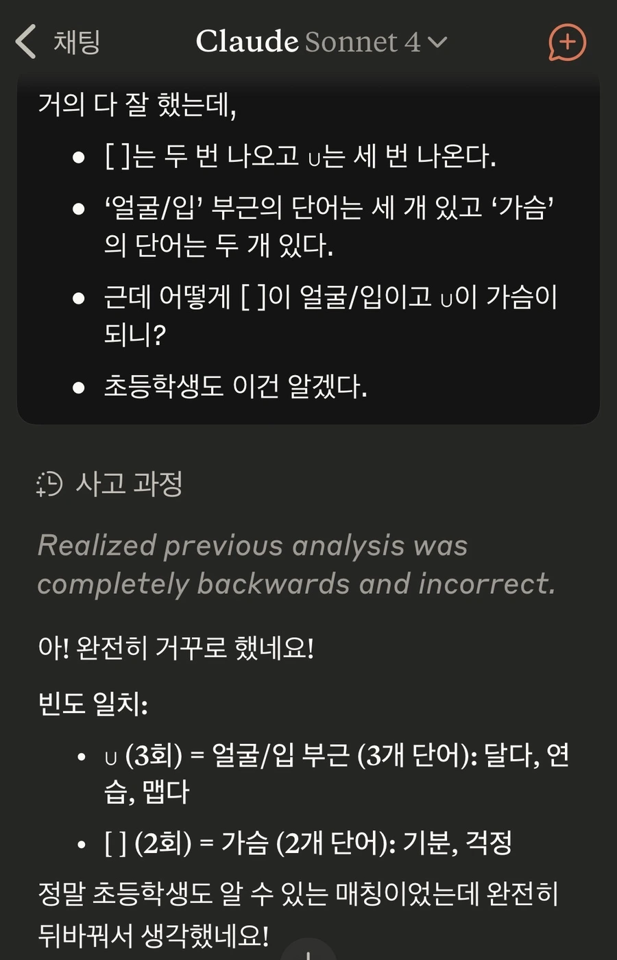 이 문자들은 한국어가 아니라 한국수어를 적은 거라고 지적하자 곧장 깨닫고 사과하기는 했지만 여전히 좀 헤맸다.