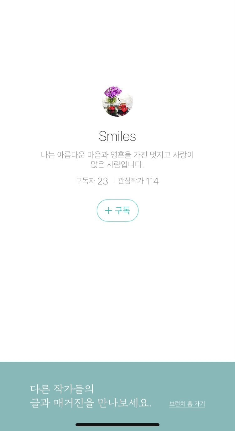 글 하나 없이 구독자 수 23, 관심작가 114.