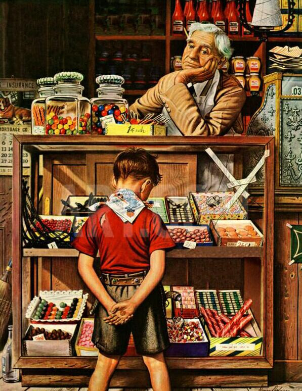 어머니는 기다란 유리 진열장 앞으로 나를 데리고 가셨다. 그 때, 커튼 뒤에서 노인이 나타났다. 어머니가 노인과 잠깐 이야기를 나누고 계시는 동안, 나는 눈앞에 진열된 사탕들만 정신없이 바라보고 있었다. 마침내, 어머니는 내게 줄 사탕을 몇 가지 고른 다음, 값을 치르셨다.