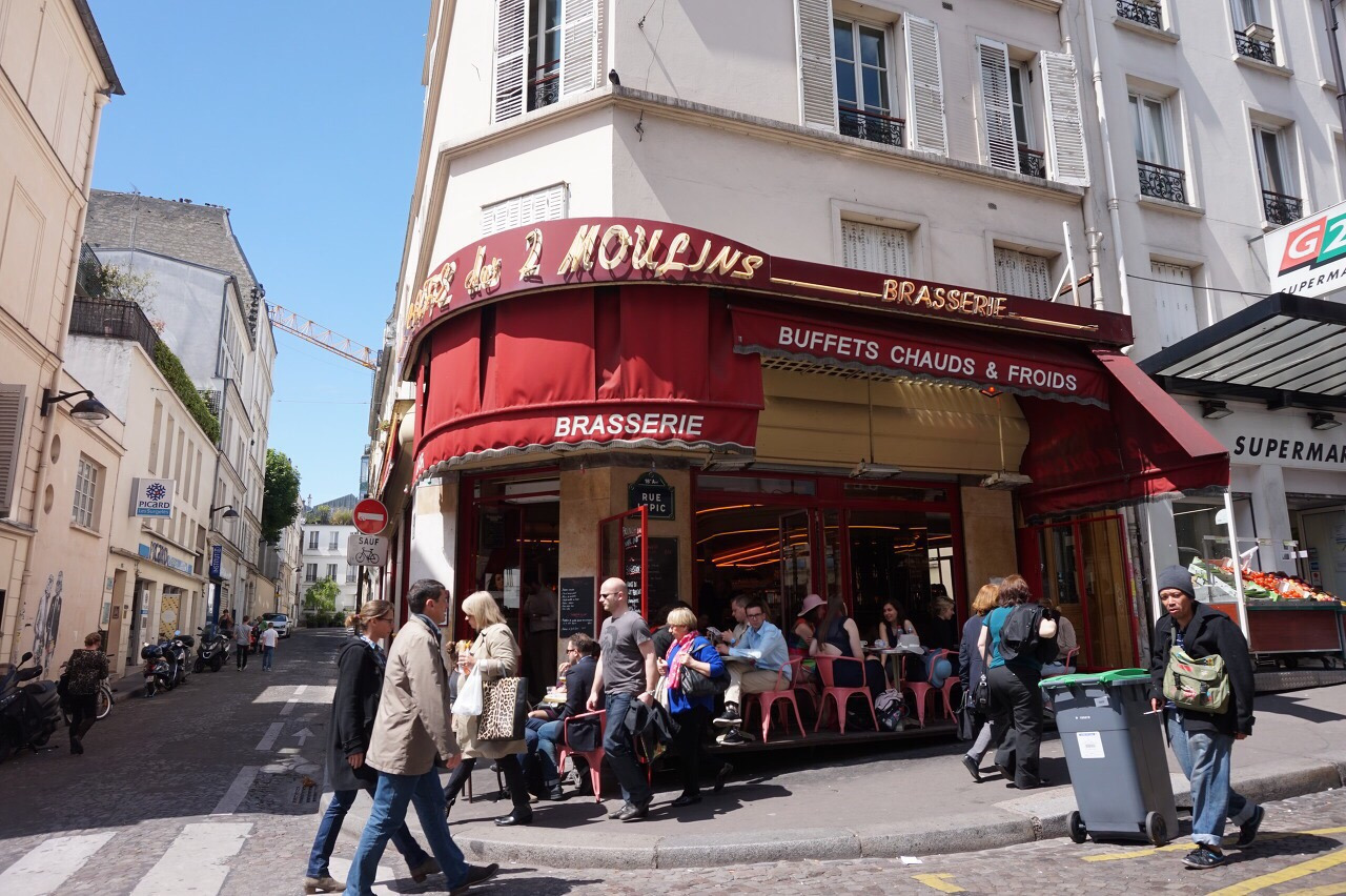 데카르트 광장에서 바게트 샌드위치로 허기를 달랜 후, 우리는 풍차 카페로 향했다. 장 피에르 주네 감독과 오드리 토투의 <아멜리에>에서 배경으로 나온 그 카페, 레 뒤 물랭 Les deux Moulin 말이다. 그런데 아무리 찾아봐도 영화 속 예쁘장한 얼굴을 가졌던 그 아르바이트생이 없네.^^