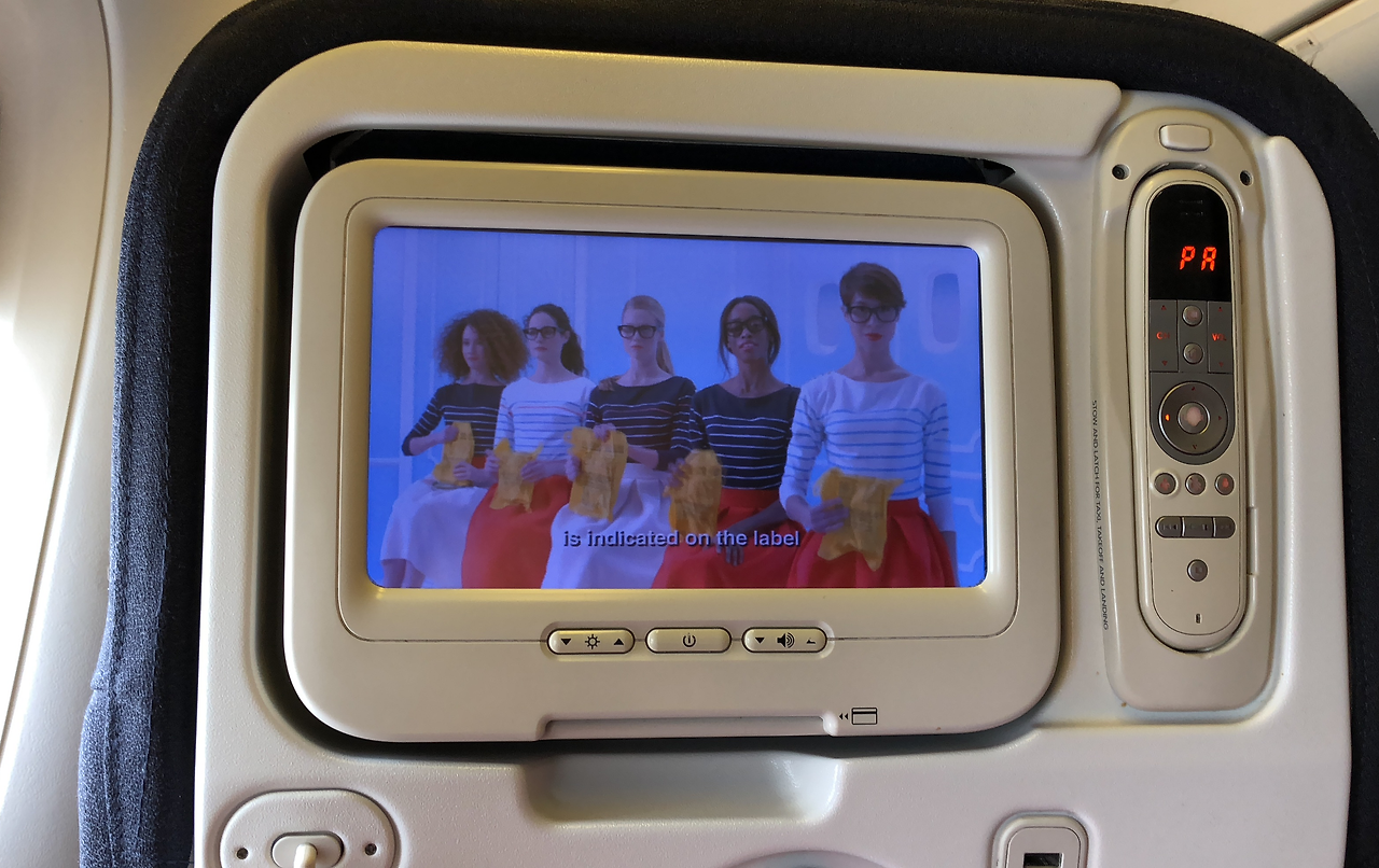 에어프랑스를 탑승하면 이색적인 기내 안내방송을 볼 수 있는데 어여쁜 승무원 모델들이 모두 프렌치 스트라이프 유니폼을 입고 있다. 상큼한 불어 발음과 너무 어울리는 의상이다. 볼 때마다 예쁘다!