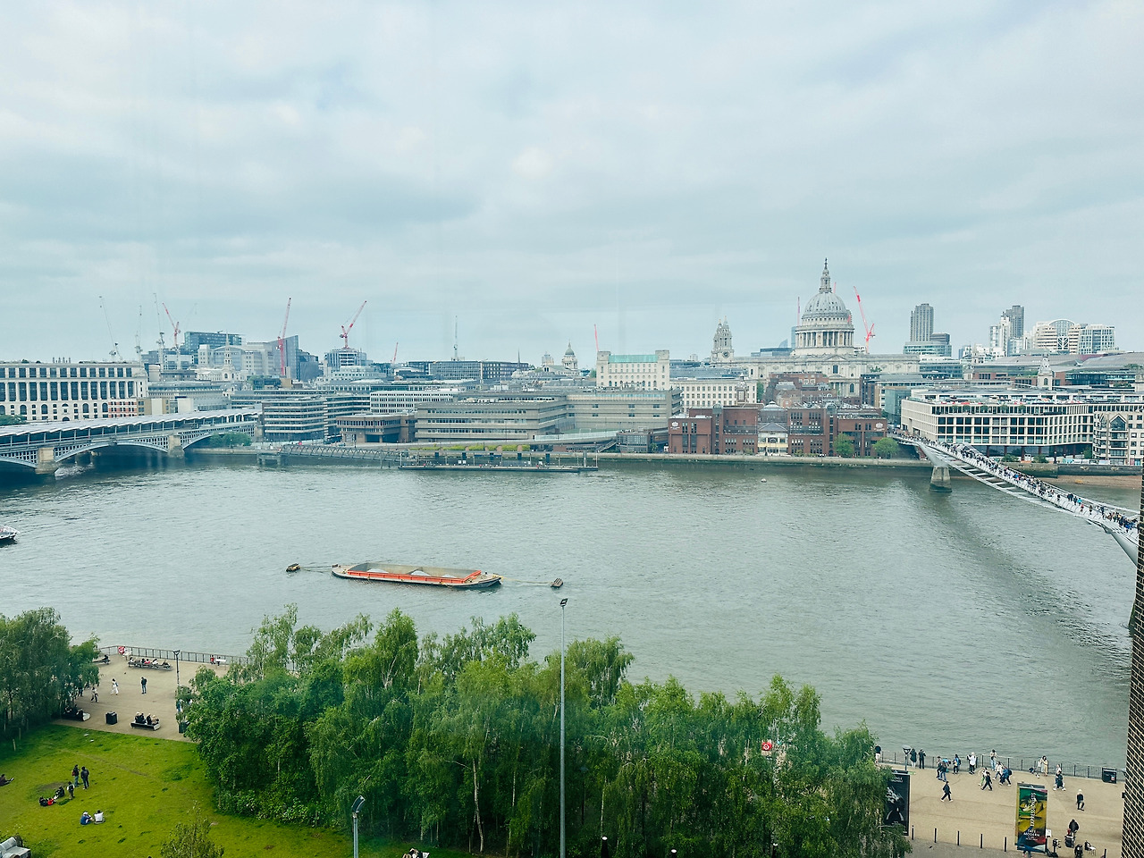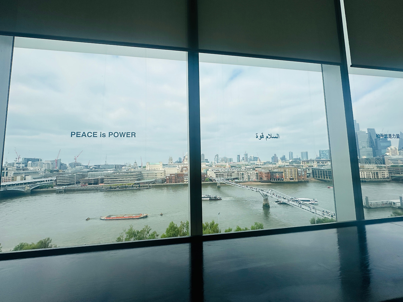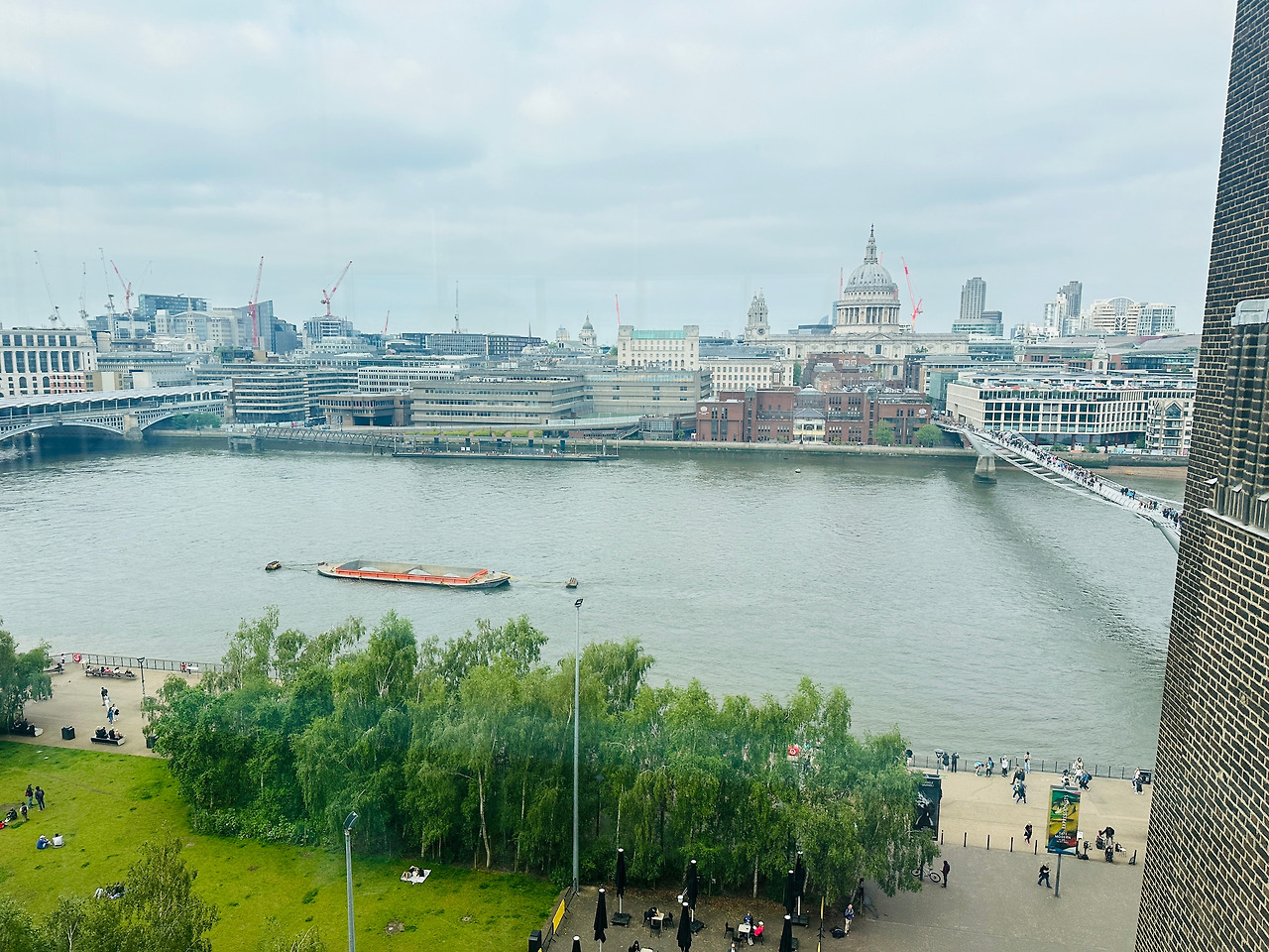 전시를 다 본 후, 꼭대기층 카페 창가에 앉았다. 창밖엔 템스강과 런던의 회색 풍경. 커피 한 잔과 노트, 조용히 나를 기다리는 문장 하나가 기다리고 있었다.