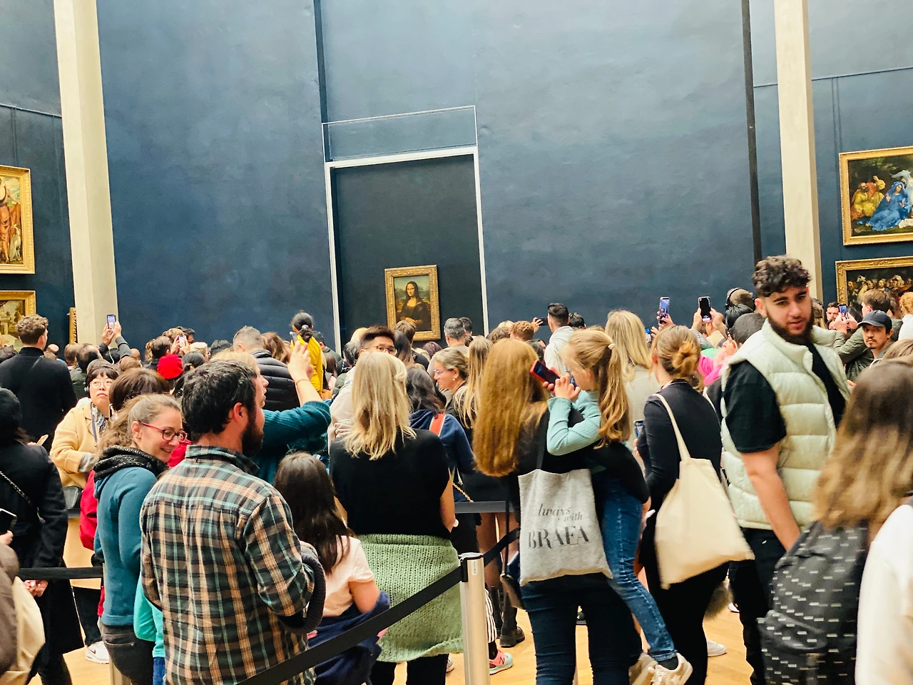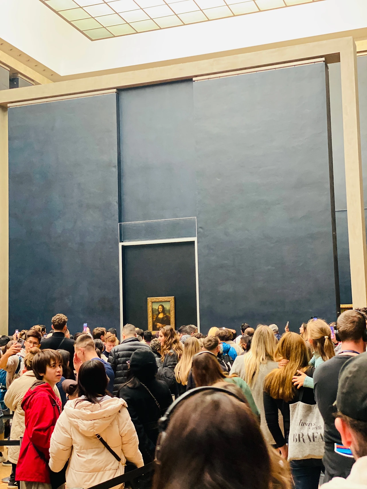 사람들의 발길은 결국 같은 방향을 향합니다. 여러 복도와 전시실을 지나, 작은 캔버스 앞에 모여든 무리들 사이에 서게 됩니다. 그녀, 모나리자. 세계에서 가장 오래 본 얼굴. 지구인이라면 누구나 아는 그림입니다. SNS 프로필 사진으로, 박물관 기념품으로, 각종 굿즈의 표지모델로, 심지어 라테 위의 거품으로 등장하는 그 얼굴. 사실 그림 그 자체보다도 수많은 복제와 스크린을 통해 더 익숙해졌죠. 생각보다 너무 작은 이 그림은 수많은 관람객들로 붐벼, 자세히 감상할 여건이 전혀 안됩니다. 현장에서 느끼는 건 예술작품의 아우라라기보다, ‘현대의 아이콘’이라는 사실만 더 강렬히 느끼게 되요.