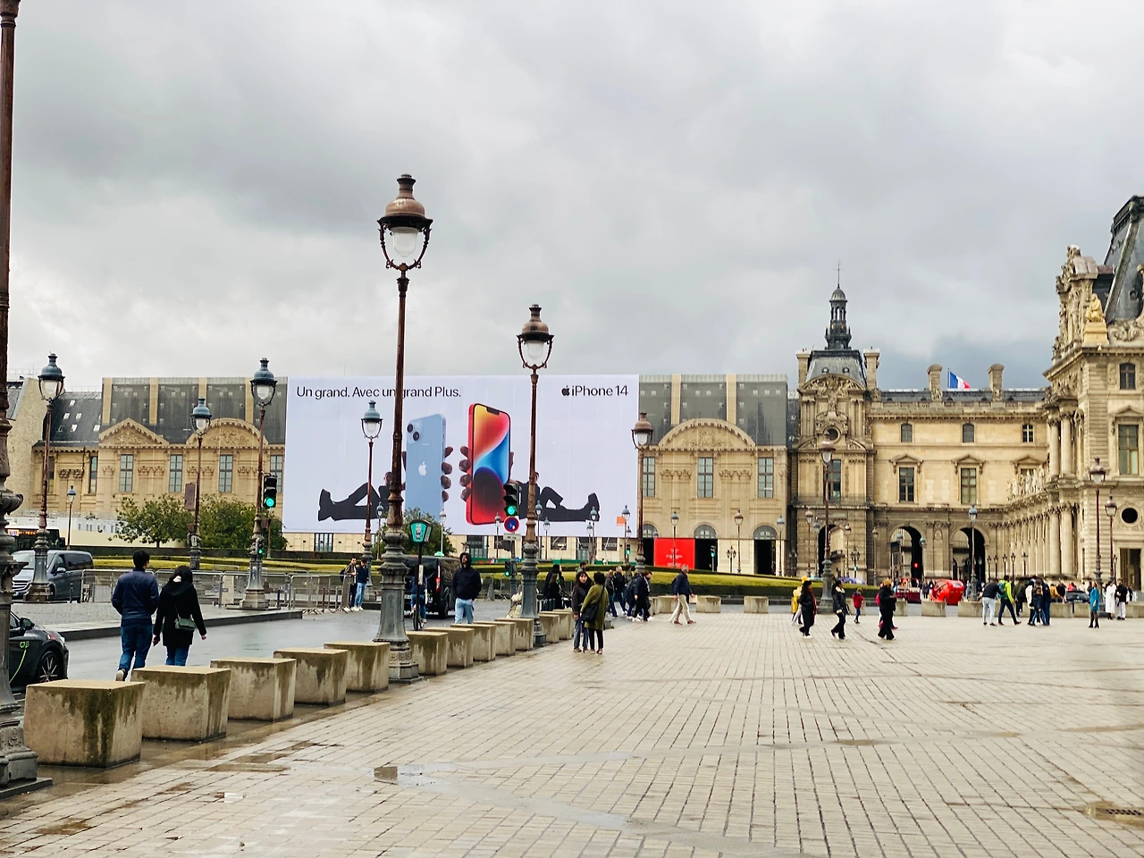 언젠가 한 번은 루브르 가는 길, 벽 한 면을 채운 아이폰 옥외광고사진을 봤어요. 한국은 여전히 코로나19로 거리두기, 마스크가 전면 생활화 되어 있을 때였습니다. 반려강아지를 본가에 맡기고, 오랜만에 파리에 들렀던 해로 기억합니다. 당시에 아이폰 14를 가지고 있었고, 애플 빅팬이기도 한 저는 순간 와우, 탄성과 함께 웃음이 났습니다.