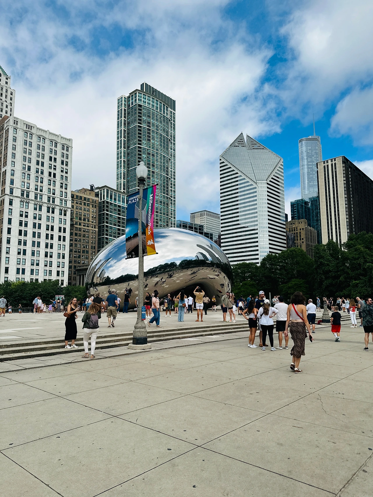 도시에 들어서자 밀레니엄 파크가 맞이합니다. 그곳의 상징인 거대한 스테인리스 조각—현지인들이 더 빈 The Bean이라 부르는 클라우드 게이트Cloud Gate는 아침 햇살을 받아 은빛으로 빛나고 있었습니다. 완두콩처럼 매끈한 곡면은 도시와 하늘, 그리고 그 앞에 선 사람들의 모습을 왜곡하며 비추고 있었습니다. 아이들은 조각 아래를 뛰어다녔고, 여행자들은 카메라를 들고 제각기 포즈를 취했습니다. 그 활기와 반짝임 속에서 시카고는 단순한 산업도시가 아니라, 현대적 예술과 자유가 살아 숨 쉬는 도시로 다가왔습니다.