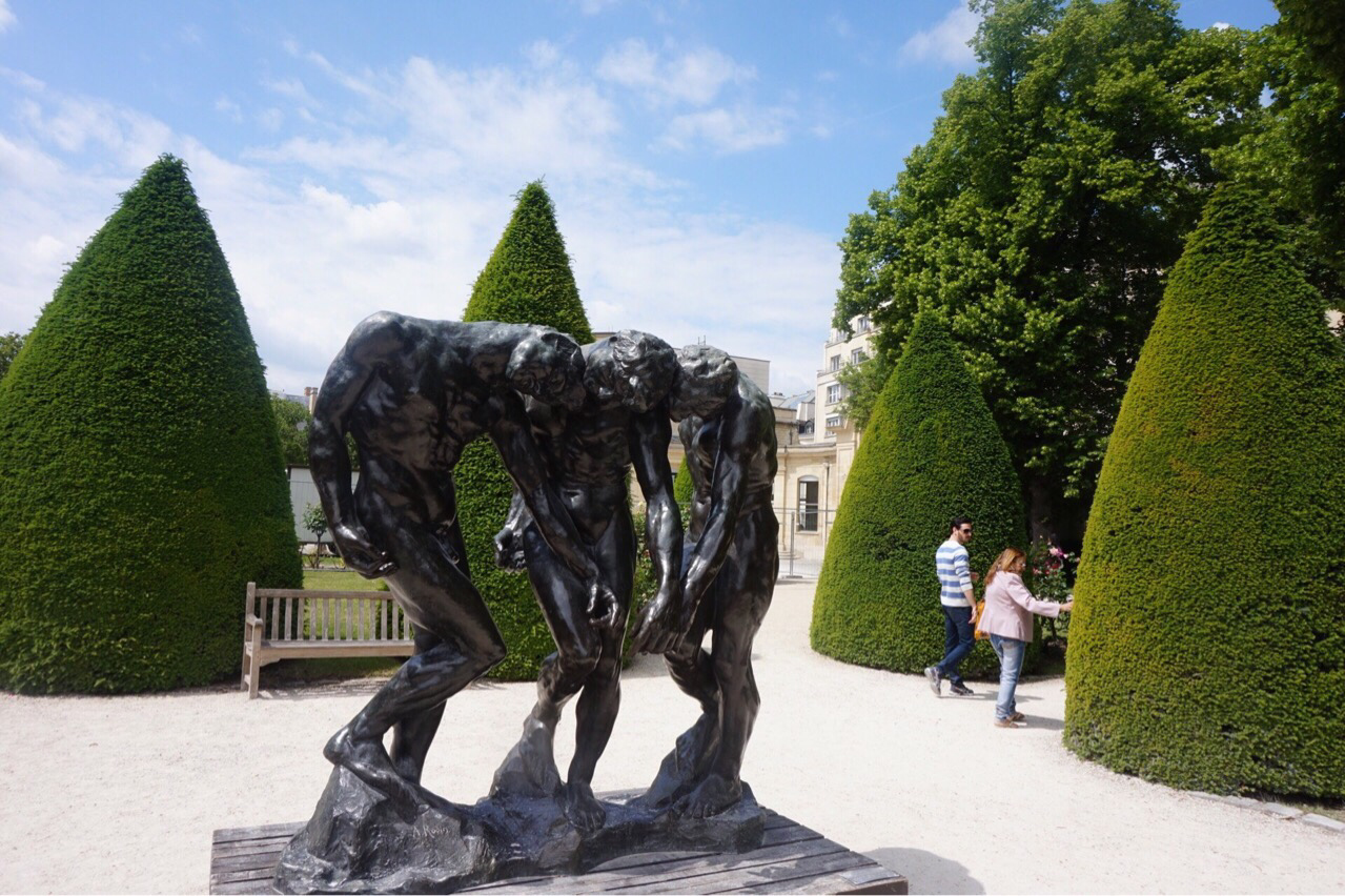 로댕의 대표작들이 고요히 숨 쉬는 이 정원은 마치 한 예술가의 내면을 산책하는 듯합니다. 정원 초입엔 묵묵히 사유하는 인간, ‘생각하는 사람(Le Penseur)’이 앉아 있고 한쪽에서는 ‘칼레의 시민들’이 고통 속에서도 존엄을 잃지 않은 채 서 있지요. 정원 중앙에는 40년간 미완성으로 남은 대작, 단체의 지옥을 형상화한 지옥의 문은 말해 모해, 압도적입니다.