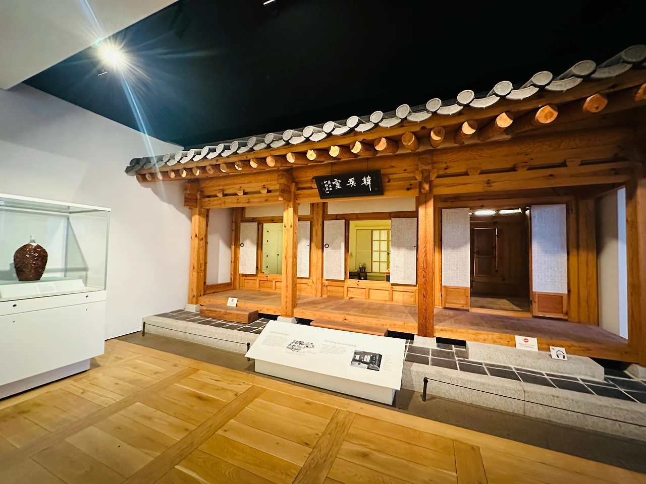 전시장 한편에서 갑자기 한옥의 기둥이 시선을 붙잡았다. 처마선, 나무 결, 온돌방의 창호— 다른 나라 여행지에서 만난 한국의 모습은 기억보다 더 따뜻하게 느껴진다.