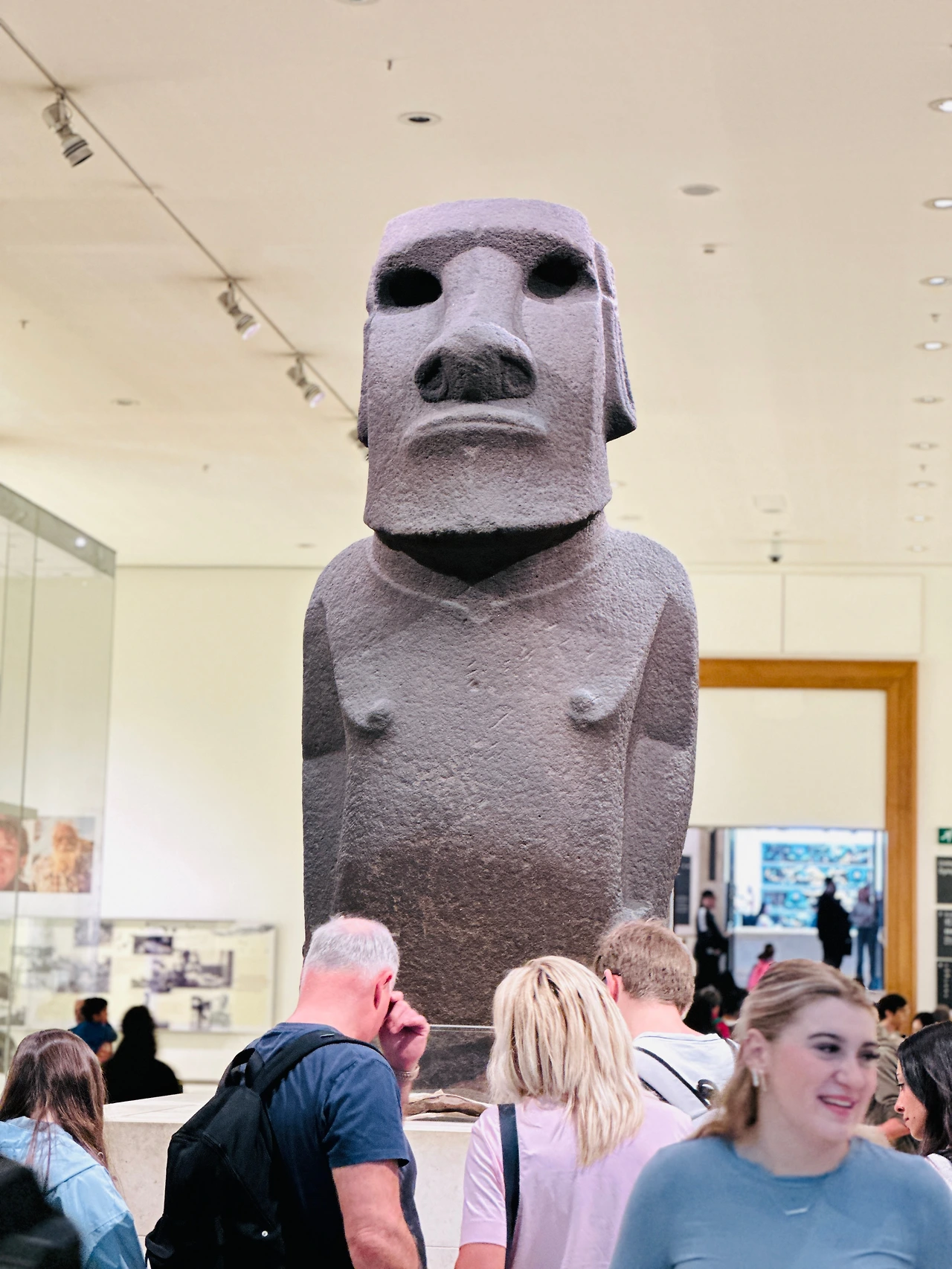 실제로 대영박물관의 유물 대부분은 과거 제국주의 시절 영국이 세계 곳곳에서 가져온 것들이고, 지금도 그 문제는 뜨거운 감자처럼 논쟁거리다. 이 박물관의 아름다움과 가치는 그 빛과 그림자를 함께 안고 있다. 하지만 또 한편, 나는 다른 진실도 느끼게 되었다. 이 거대한 공간을 포함한 대부분의 자이언트 뮤지엄들은 입장료가 무료다. 어떤 배경, 어떤 국적이든 누구나 와서 인류 문명을 마주할 수 있다. 어린 학생들, 여행자, 런던 시민, 예술가, 연구자… 모두가 동등하게 세계의 시간을 공유한다. 그 속에서 어떤 보물은 빼앗긴 역사임이 분명하지만, 문화의 향유는 누군가의 삶을 더 넓혀주는 일이기도 하니까.