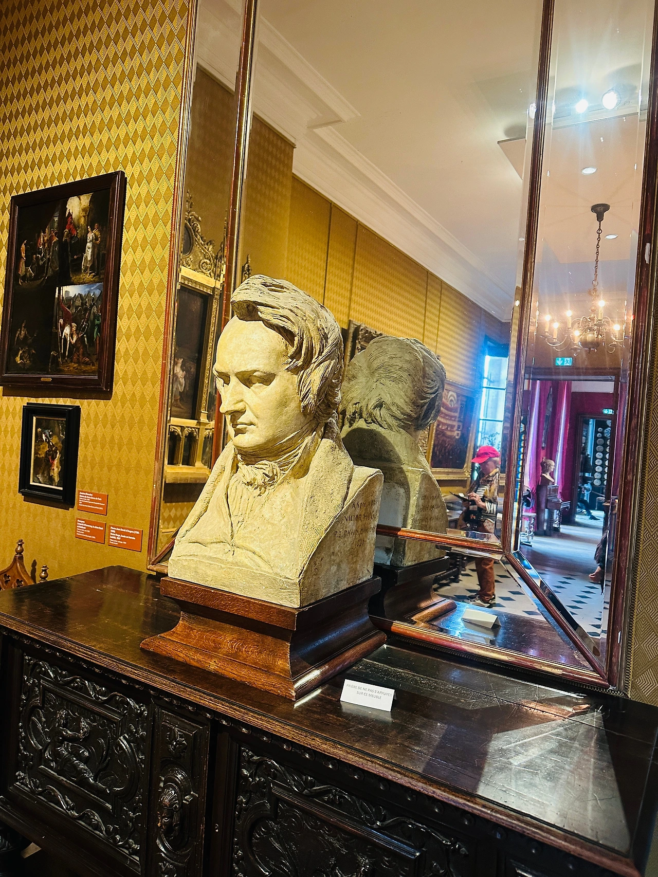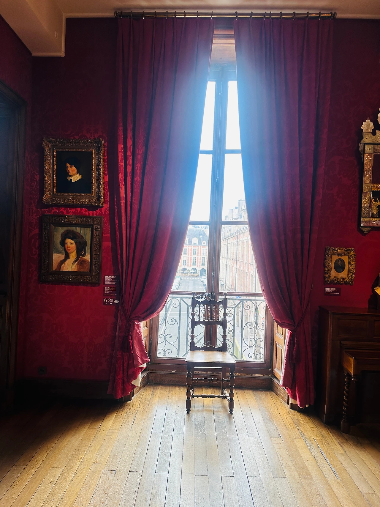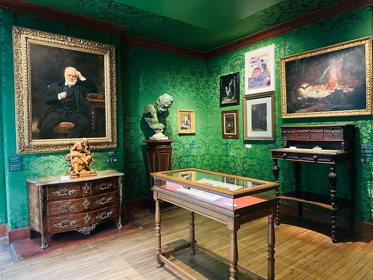 서재에는 위고가 실제로 사용한 책상과 의자가 놓여 있고, 붉은 실내 장식은 그의 성격처럼 강렬하면서도 품위 있습니다. 위고가 투쟁하던 문장들의 기세가 고스란히 남아 있고, 창밖으로 보이는 보주광장의 정숙한 풍경은 그가 왜 이곳에서 인간의 존엄을 이야기했는지 말없이 설명해주는 듯합니다.