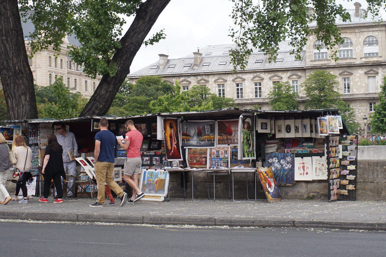 그렇게 오도가도 못한 그림들을 판매하기 위한 차선책으로 루브르 박물관 앞에는 판화와 모사화들이 주를 이루는 상점들이 생겨납니다. 현재 노트르담을 시작으로 저 밑 오르세, 루브르까지 연결되는 하나의 거리.. 그 자체도 하나의 예술입니다.