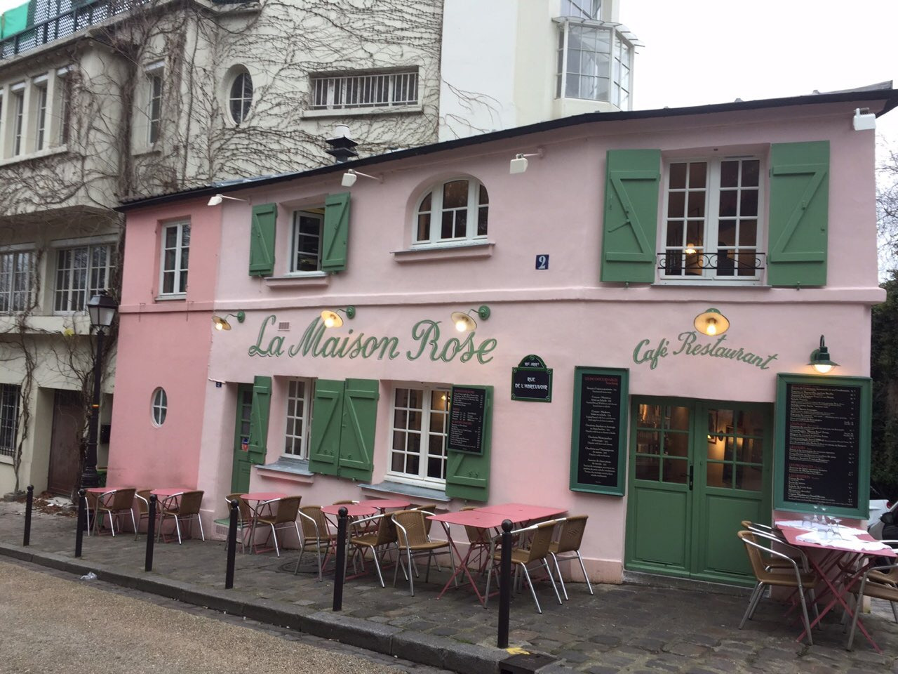 몽마르트르 언덕을 올라가는 그 길....눈에 띄게 예쁜 집이 있지요? La maison Rose 라 메종 로즈 '장미의 집'