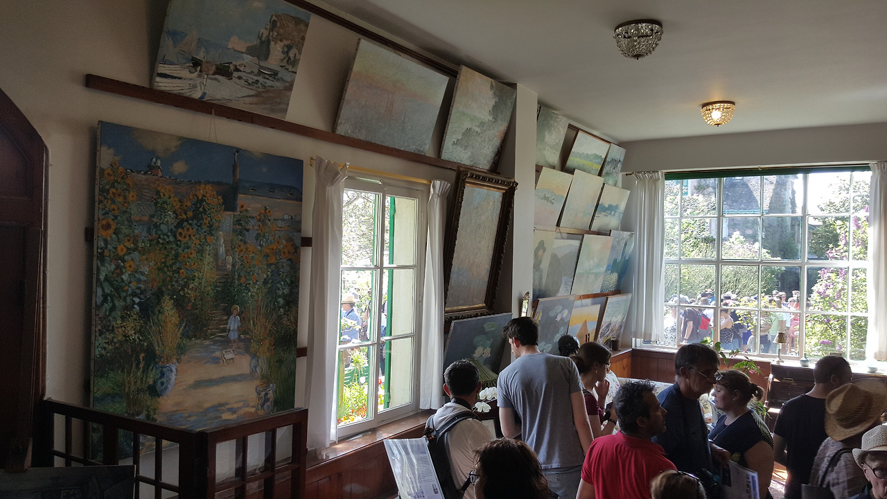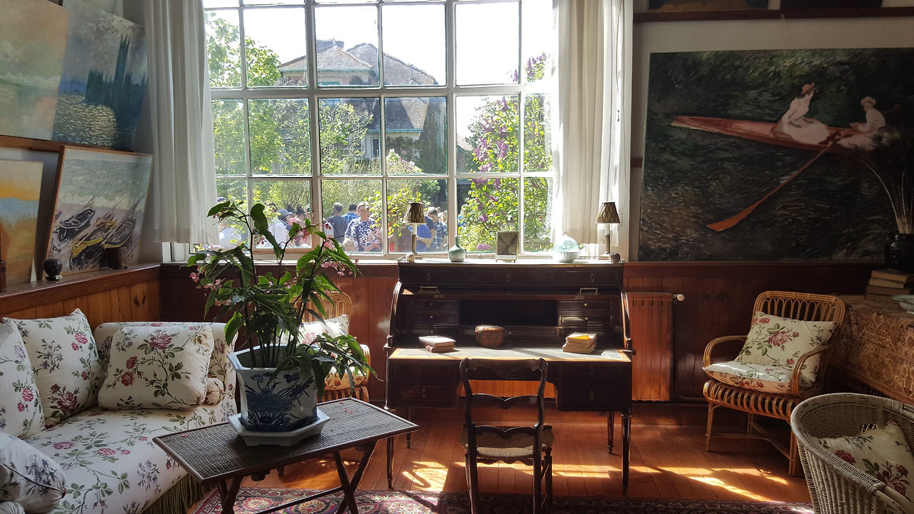 자, 이제 화가의 집안 풍경은 한번 어떤지 들어가 볼까요. 입구를 들어서면 일본 우키요에 판화가 대거 소장된 푸른 방을 거쳐 바로 모네의 스튜디오로 향합니다. 늘 빛을 관찰하고 탐구하던 빛의 화가 모네에게는 하루 온종일 햇살이 가득 필요했을 터. 그의 작업실과 침실은 넓은 창이 정원을 향해 열려있었습니다.