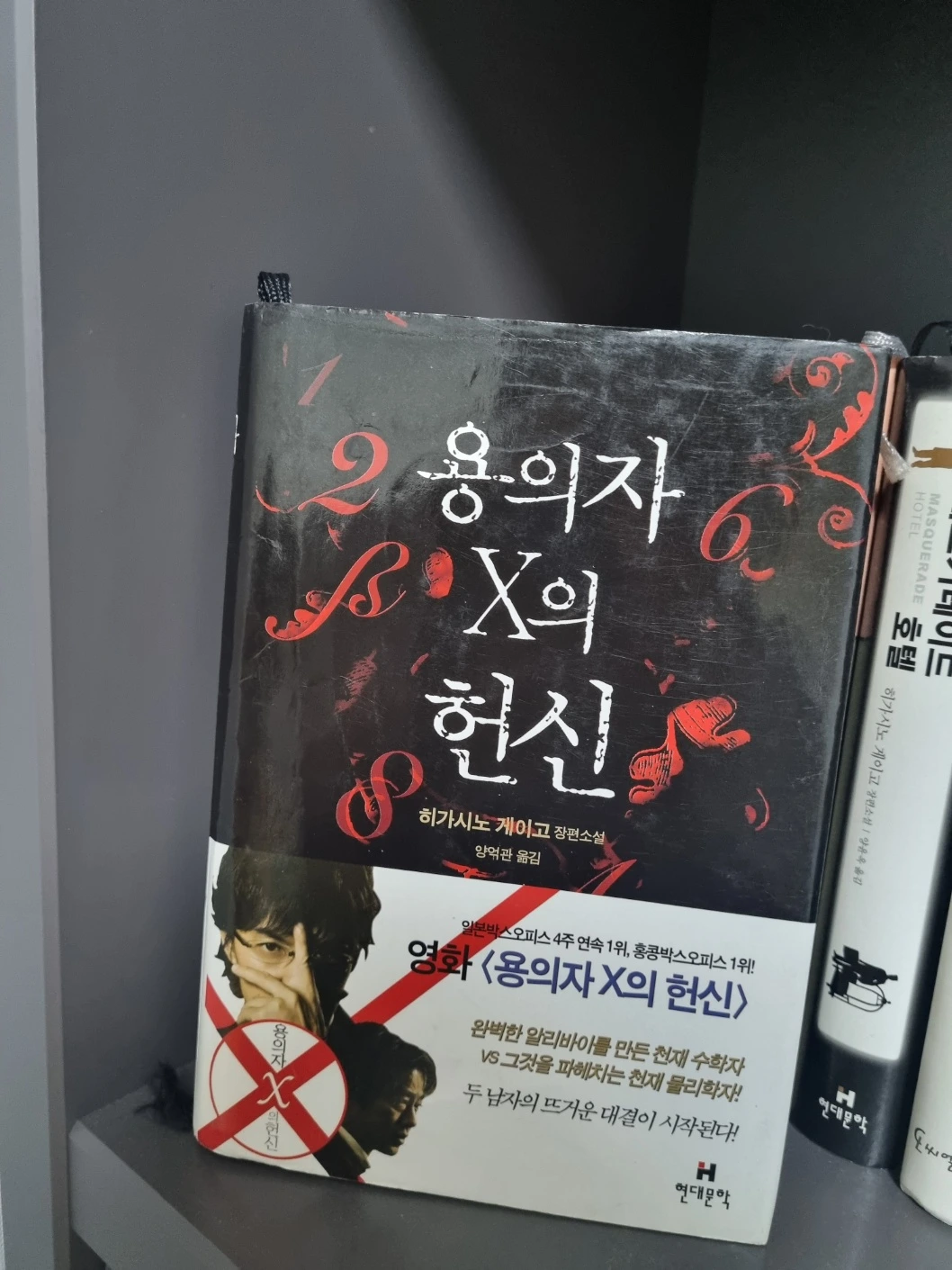 사실 저는 책을 끔찍히 싫어했는데요. 어느 정도였냐면 부모님이 책 좀 읽어라 하고 혼내실 정도였습니다. 그런데 어느날 사춘기에 막 접어들 청소년기였나? 갑자기 글자가 읽고 싶은 거예요, 그래서 그때 근처 서점이 이마트 안에 있었어요. 그곳 점원 분께 책 추천 받아서 처음 제 손으로 산 책이 히가시노 게이고님의 <용의자X의 헌신>이라는 책이었습니다.