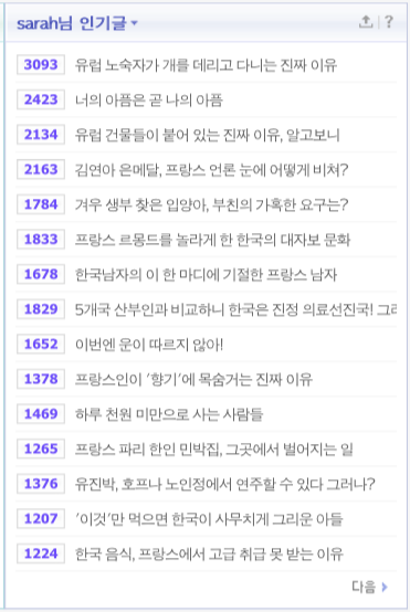 블로깅 자체가 너무 좋았고, 연애하듯 즐기면서 했다. 블로그에 글을 쓸 생각만 해도 심장은 박진감 있게 뛰었다. 대부분 글의 ‘좋아요’ 수는 1,000에서 3,000에 육박했으며, 어떤 경우는 댓글이 1천 개 넘게 달리기도 했다. 물론 그중 1/3은 악플이었지만.