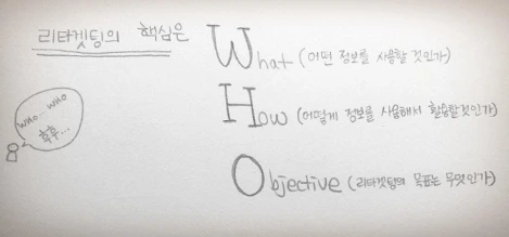 리타겟팅 광고의 핵심은 바로 고객정보에 있다. 리타겟팅 성과를 만들어내는 핵심 요소들을 살펴보자. 개인적으로는 아래 'WHO'를 중심으로 생각해보는걸 추천한다.