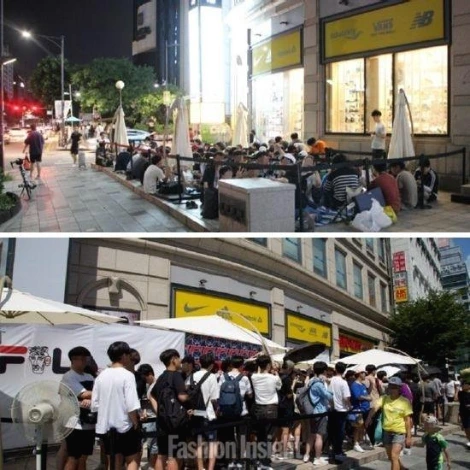 자, 여기서 독자 여러분들께 퀴즈. 위 사진은 어떤 행사일까? 오늘날 밀레니얼 세대가 브랜드에 친숙하다는 것은 앞서서 이야기했으니 휠라(FILA)의 행사라는 것까지는 힌트를 줄 수 있겠다. 바로 휠라와 '우왁굳'의 콜라보레이션 제품이 런칭하는 매장 앞 전경이다. 전날부터 노숙을 하며 제품을 기다리는 사람들의 모습이 보인다. 이 콜라보레이션은 런칭하자마자 15분 만에 완판 되고 2차 '콜라보'까지도 성공적으로 진행되었다고 하니, 제품을 구하려는 사람들의 바이럴 효과와 발생한 기사의 양 등을 고려해보았을 때 마케터로서 성공한 콜라보레이션이다.