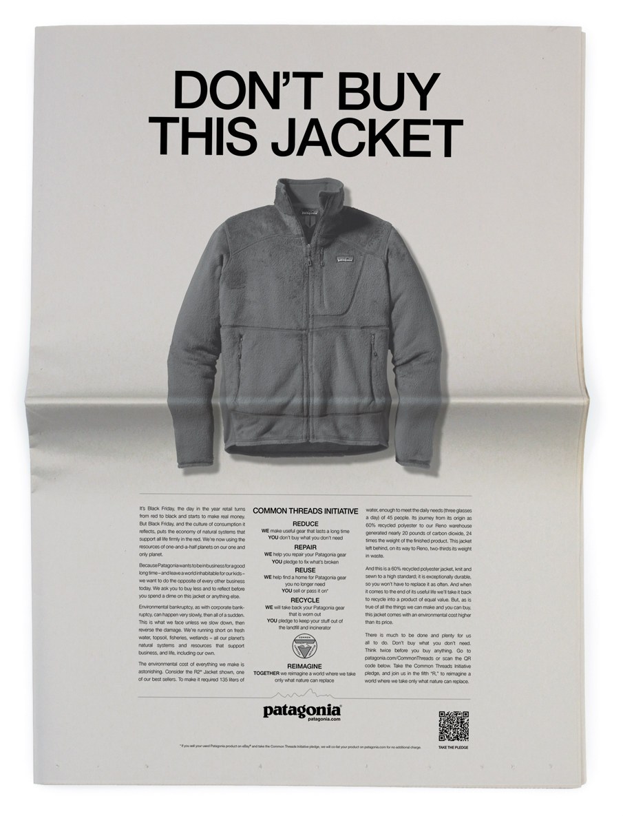 '제품을 사지 말라'는 문구가 시선을 사로잡는다. 메인 카피 문구 아래에는 재킷을 만들기 위해 필요한 자원이 자세하게 나와있다. / 출처 : 구글 검색 결과
