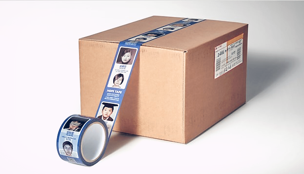 '2020 대한민국광고대상' 수상작 '호프테이프' 캠페인. 장기실종아동 28인 정보를 담은 포장용 박스테이프를 제작, 실종아동에 대한 관심을 유도한 캠페인 / 출처 : 제일블로그