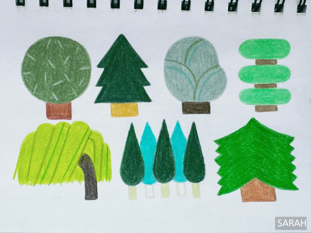 오늘은 다양한 나무들을 그리고 색칠하는 수업이었습니다.