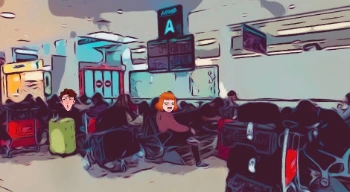 어떤 한 남자가 달려오고 있다. 그는 오지 말았으면 했던 내가 탈 비행기의 마지막 승객이었다. 이제야 결승지점에 나타나 지친 몸과 가방을 질질 끌면서 나타나, 탑승구가 닫히기 직전에 체크인 카운터에 도달했다.