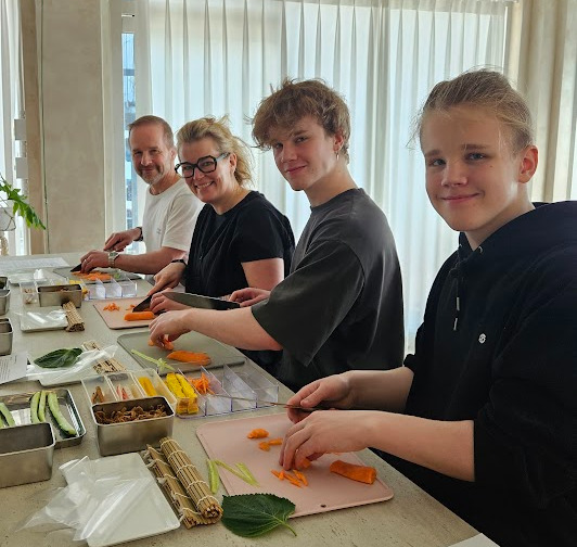 스웨덴에서 온 네 가족이 함께 김밥 만들기 워크숍에 참여했다.