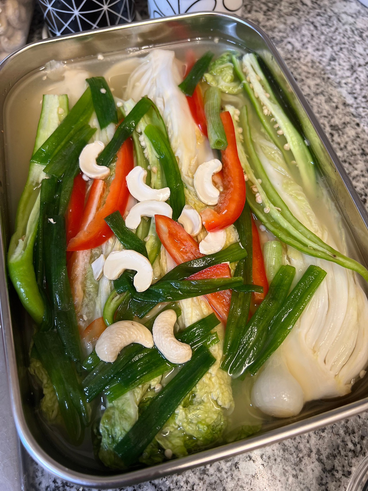 그러나 배추 이외의 재료 공수는 생각보다 쉽지 않았다. 무는 없어서 생략했고, 쪽파도 없어서 대파도 쪽파도 아닌 어중간한 굵기의 파를 사용했고, 잣 대신 캐슈넛, 홍고추 대신 파프리카를 넣었다. 그런 것은 아무래도 좋았다. 김장의 훌륭한 조력자가 있었으니 말이다. 배추와 파를 씻고 다듬고, 다듬은 후 나온 어마어마한 양의 쓰레기 처리는 메이드 아줌마가 깔끔하게 맡아 주었다. 결과는 대성공. 내가 알던 맛의 김치였다. 심지어 너무 맛있어서 이것이 정녕 내가 담근 김치인 건지 믿어지지 않을 지경이었다. 만들어 파는 김치 같다고 가족들도 극찬했다.