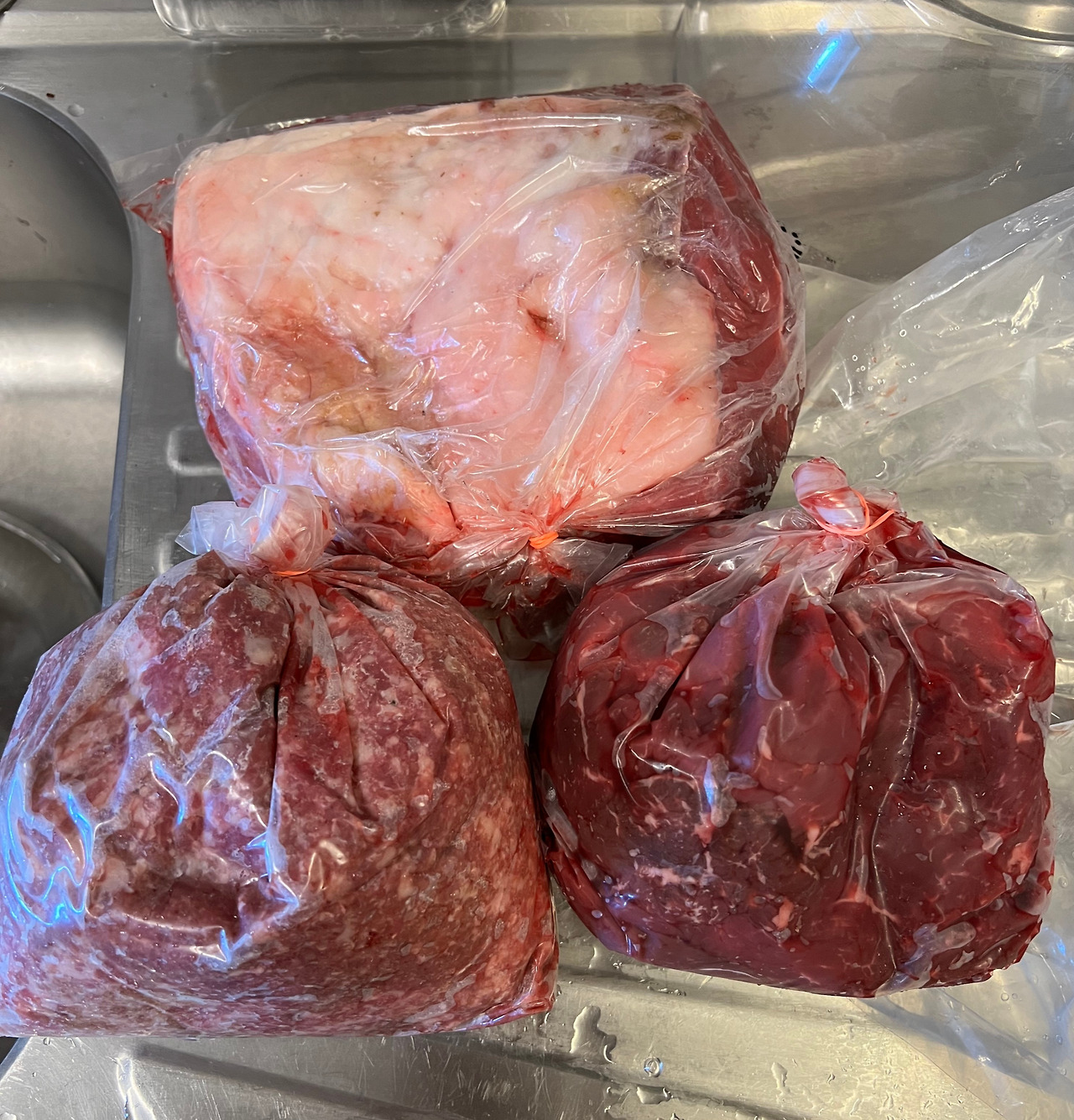 꽁꽁 싸맨 봉지를 여니 얼음이 가득하다. 얼음이 담긴 봉지 안에 또 투명한 봉지가 있어 열어 보니 정말 놀랍게도 냉동이 아닌 냉장 고기가 들어있다. 얼른 꺼내서 보니 빨간색이 내가 아는 그 소고기가 맞다. 그리고 냄새를 맡아봤다. 합격! 이건 진짜 소고기 냄새였다. 비리지도 않고 물냄새도 안나는 신선한 그런 소고기 말이다.