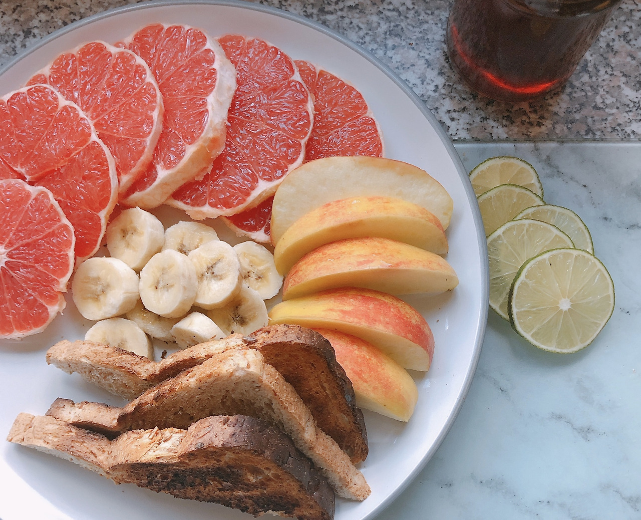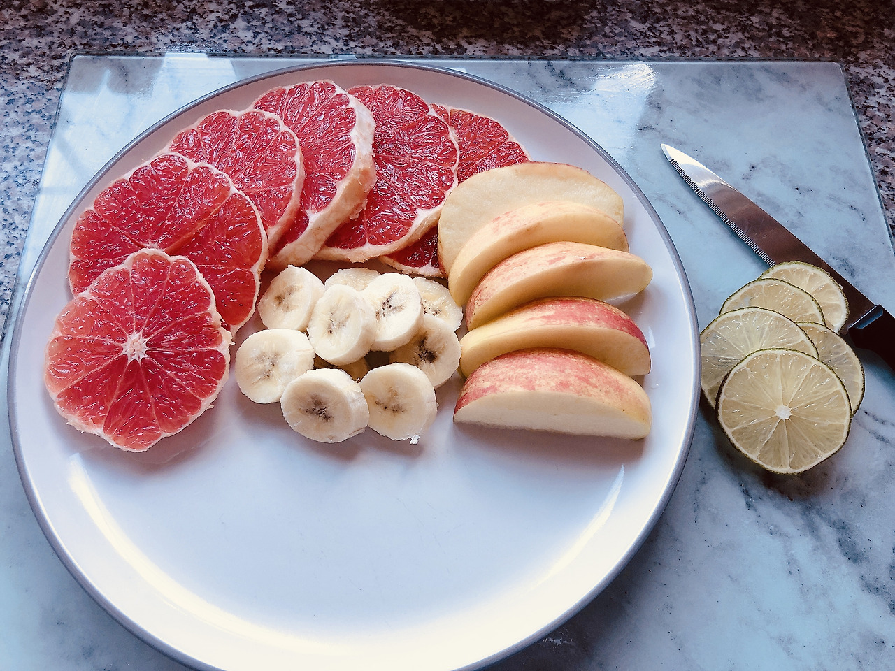 자몽 껍질은 그냥 박박 요령도 없이 벗겼고 라임도 씻어 슬슬 잘라줬어요. 얇게 얇게 자르고 싶었는데 요령이 없는 탓에 숭덩숭덩 투박해진 것도 같아요.