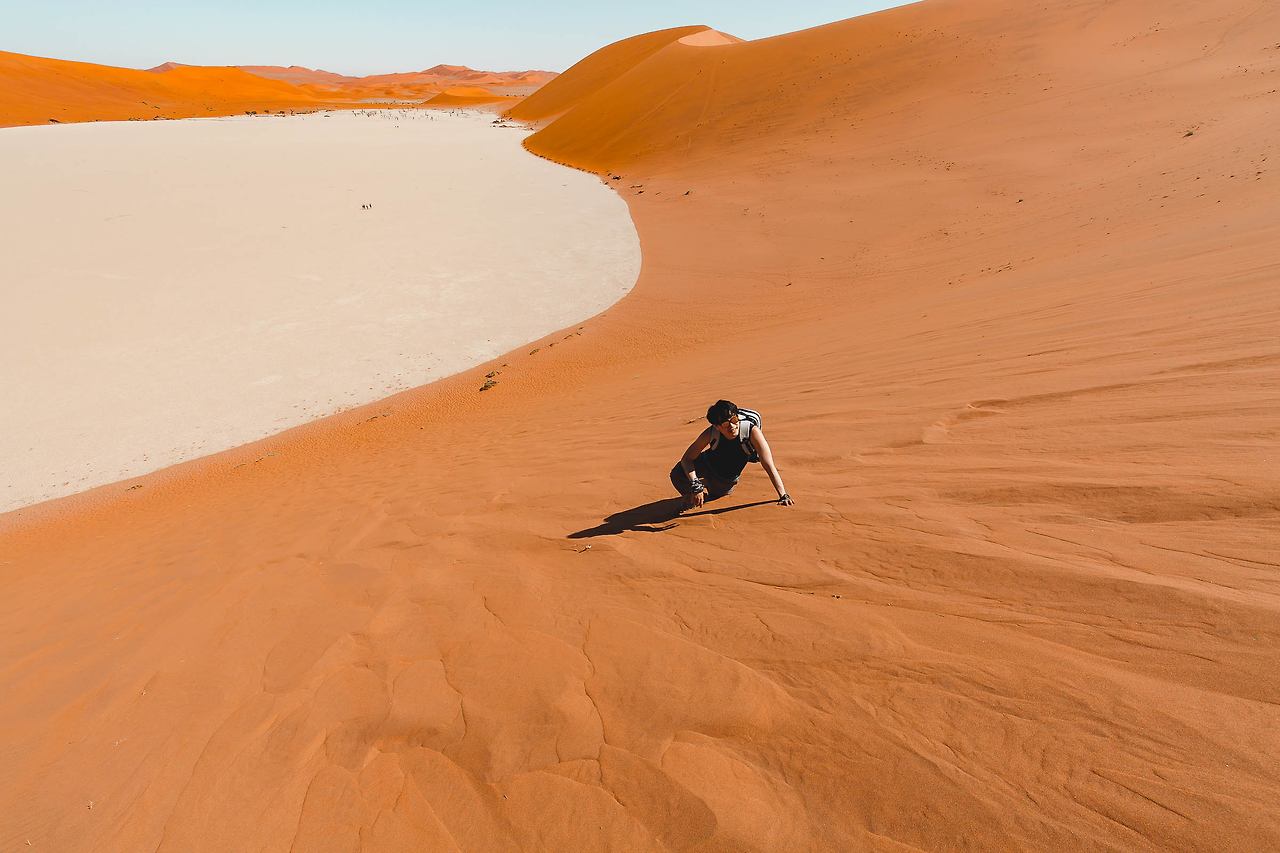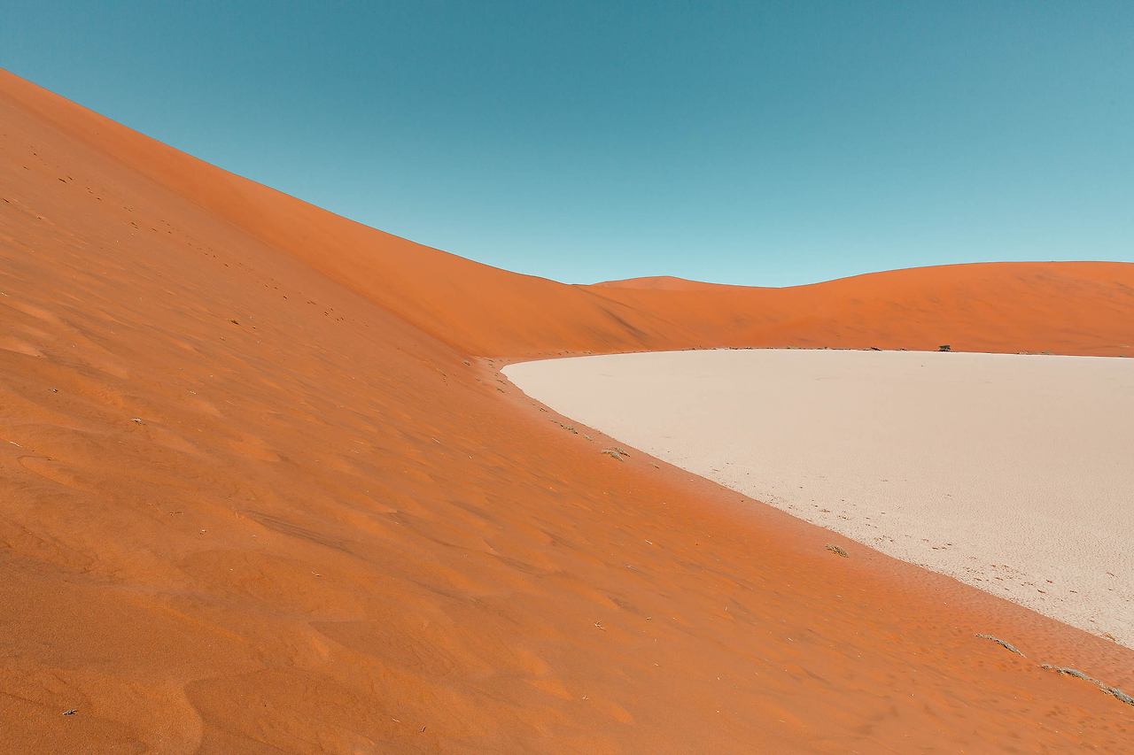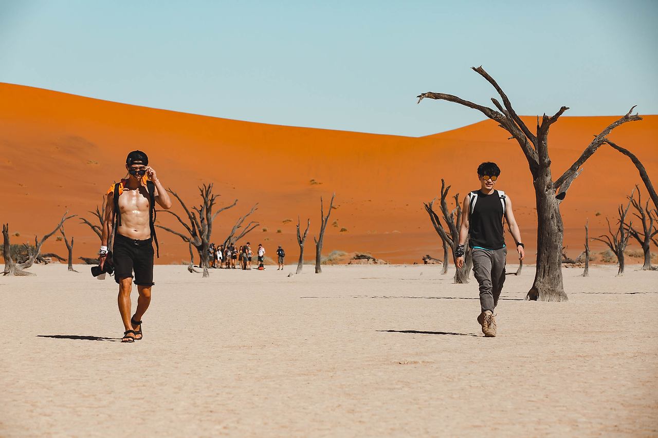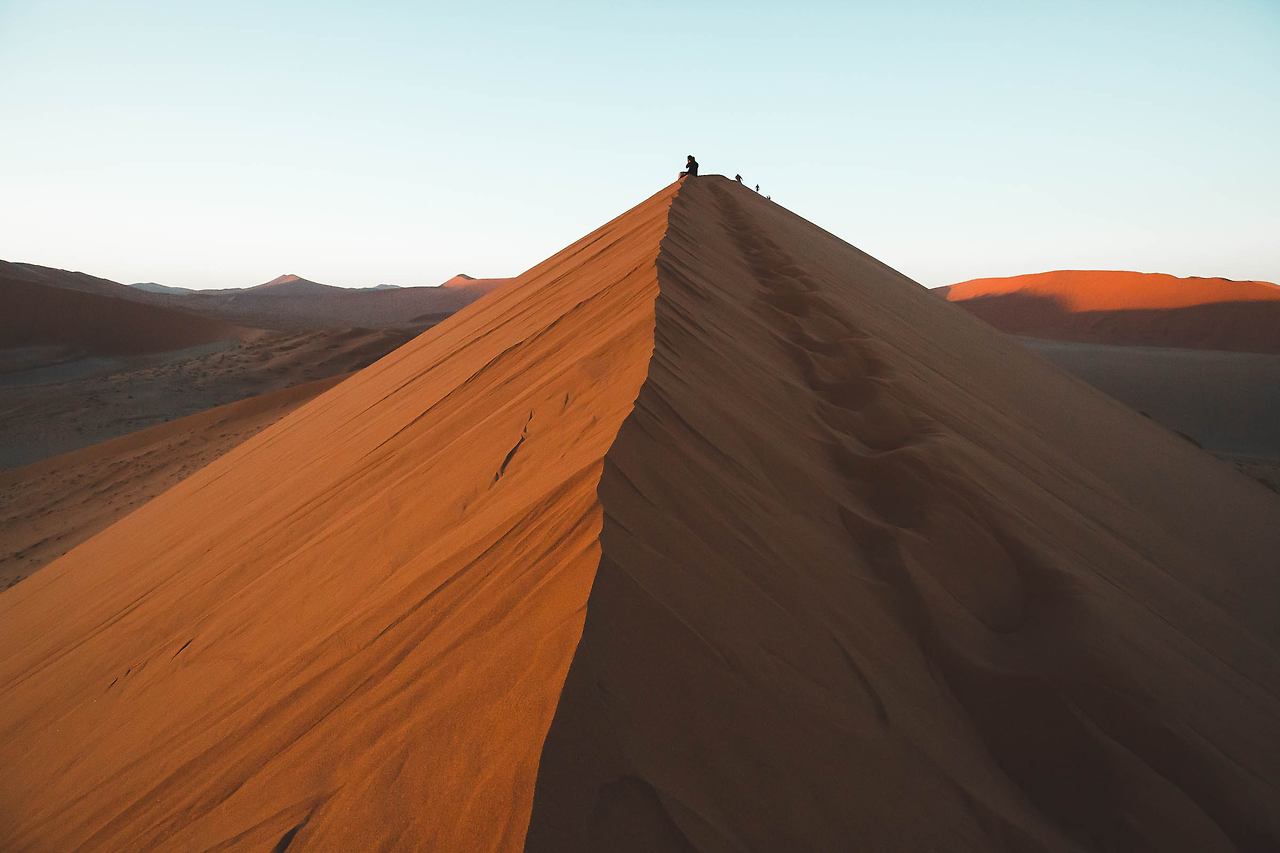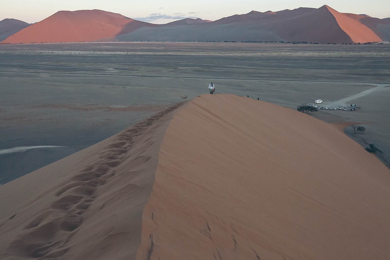 한 번쯤은 들어봤을 듄 45, 데드 블레이, 빅대디 등이 있는 곳! 특히 듄 45에서 일출을 맞이하는 것은 나미비아 여행에서 가장 중요한 일정이다. 때문에 이른 새벽부터 모든 여행자들이 짐을 챙겨 이곳으로 향한다. 듄 45까지는 가장 가까운 캠프 사이트에서도 차로 40-50분이 소요되고 모래 언덕을 오르는 시간까지 계산해야만 한다. 고로 새벽 5시에 일어나 서두르지 않으면 일출을 놓칠 수 있다.