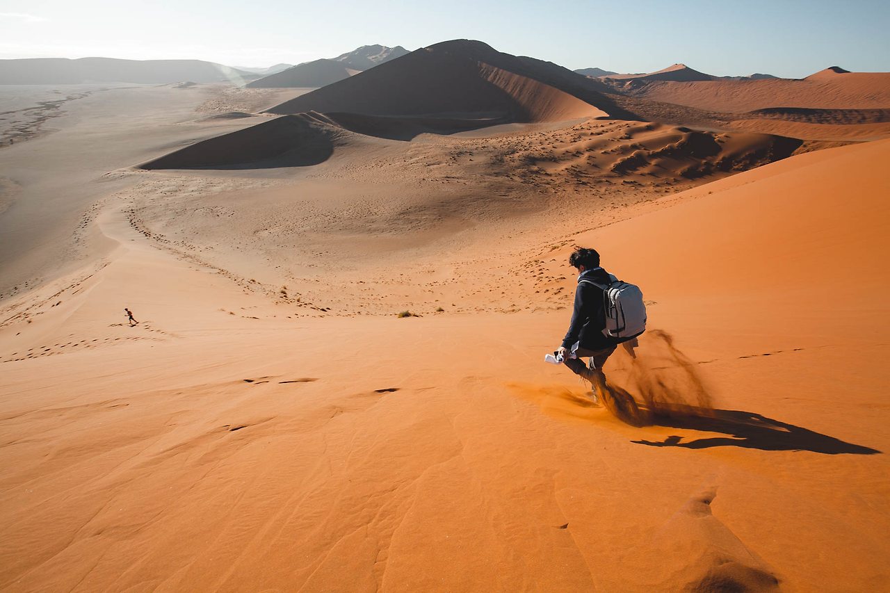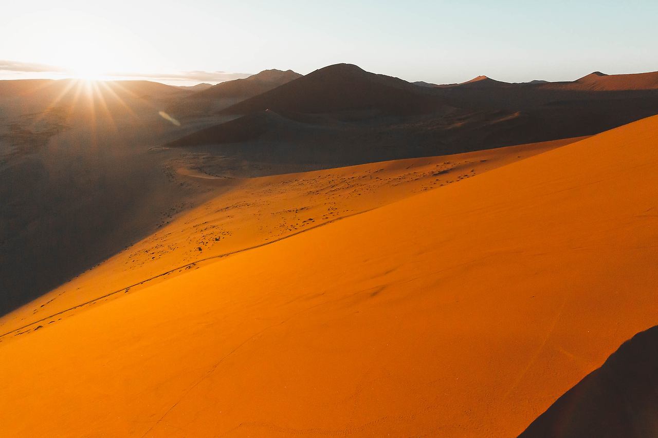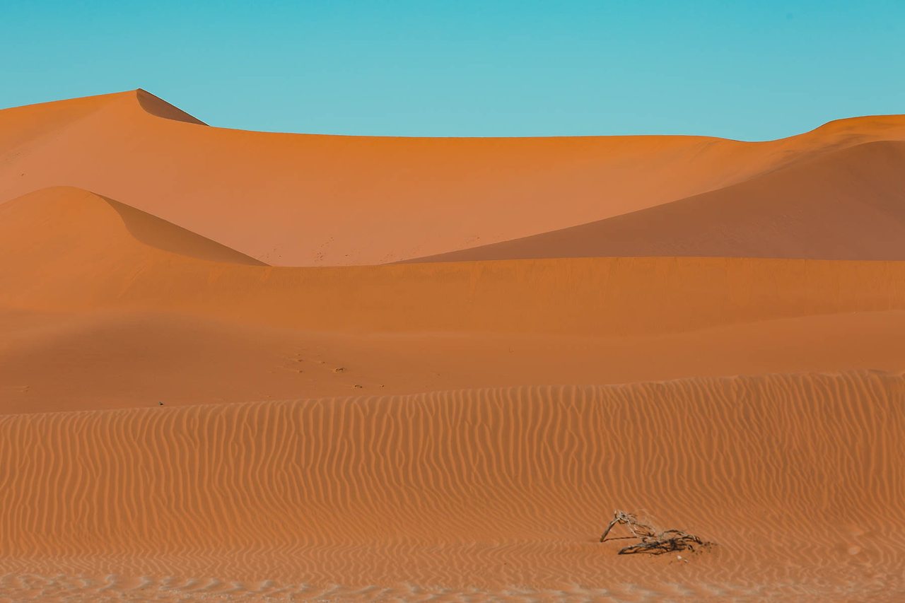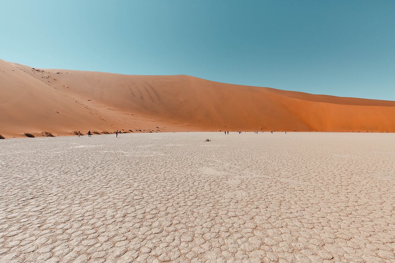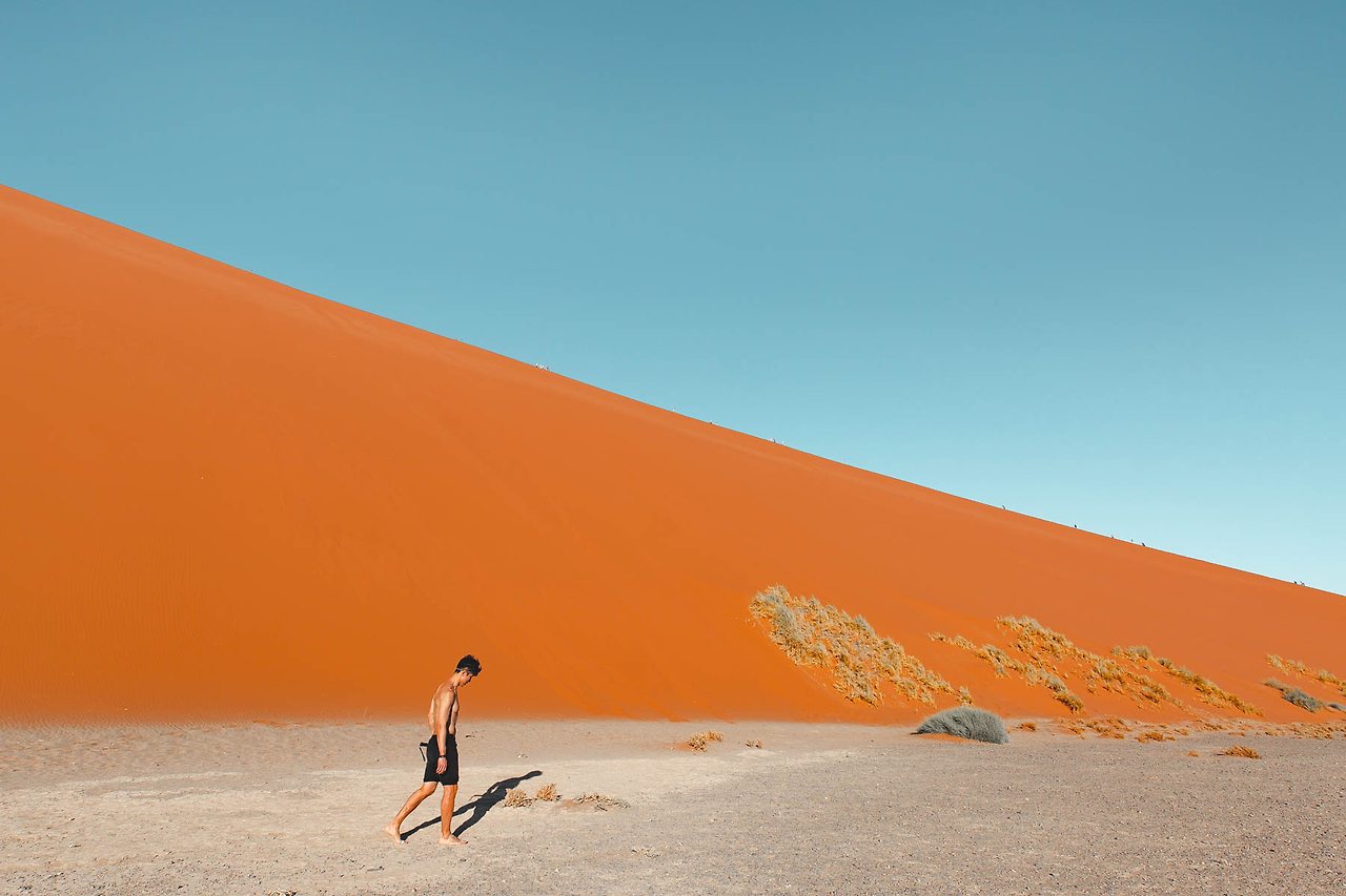 한 번쯤은 들어봤을 듄 45, 데드 블레이, 빅대디 등이 있는 곳! 특히 듄 45에서 일출을 맞이하는 것은 나미비아 여행에서 가장 중요한 일정이다. 때문에 이른 새벽부터 모든 여행자들이 짐을 챙겨 이곳으로 향한다. 듄 45까지는 가장 가까운 캠프 사이트에서도 차로 40-50분이 소요되고 모래 언덕을 오르는 시간까지 계산해야만 한다. 고로 새벽 5시에 일어나 서두르지 않으면 일출을 놓칠 수 있다.