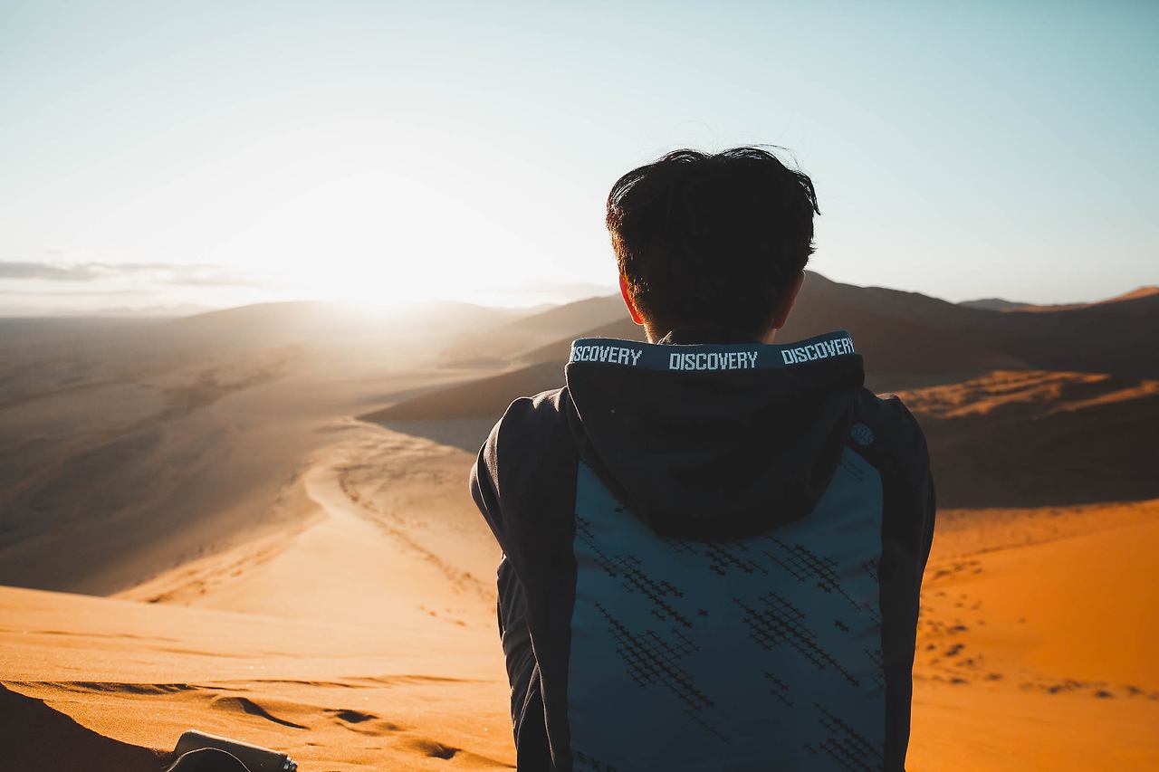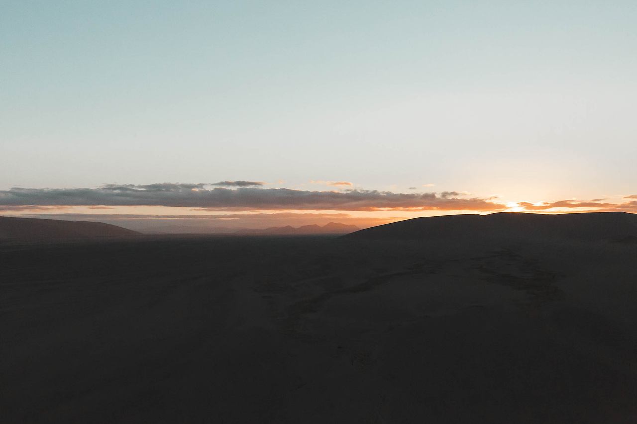 듄 45 언덕에 올라 해를 맞이한다. 고요하고 어둡기만 한 사막에 생명을 불어넣는 듯 우아한 불빛이 내린다.