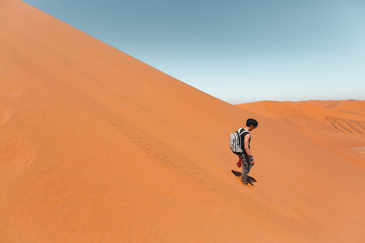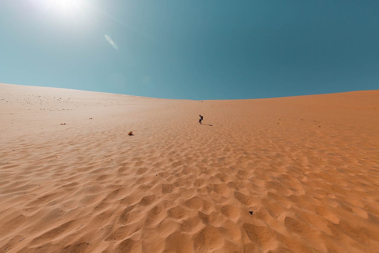 이제 데드 블레이를 두르고 있는 언덕들 중 우리의 최종 목적지인 빅대디에 오르는 일만 남았다. 빅대디는 350~400m 높이의 크레이지 언덕이라고 불리는데 우리가 도착한 낮 시간대에 올랐다가는 '내가 미쳤지..'라는 말이 절로 나올 정도로 뜨거운 모래와 발이 푹푹 빠지는 고난으로 악명이 매우 높다는 것! 그럼에도 제대로 된 루트를 이용한다면 덜 힘들었을 것, 우리는 바보같이 가장 경사가 가파른 50도 수준의 최악의 길을 선택했다. 보통은 정상에서 사람들이 내려올 때 이용하는 길로 가장 가파르고 스릴 넘치게 내려올 수 있는 길인데, 팀장인 나의 바보 같은 제안에 팀원들이 모두 불필요한 개고생을 하게 되었다. 그때도 미안했지만 다시 한번 미안함을..