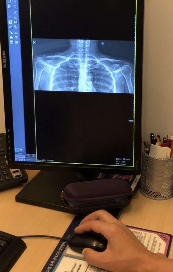 처음 쇄골 골절 진단을 받았던 동네 병원을 한달만에 다시 방문했다. 대학 병원 어깨 명의의 외래진료 예약을 운좋게도 다음 주 화요일로 잡았는데, 현재 내 상태가 많이 호전되고 있어서 굳이 무리해서 먼거리를 왕래하며 진료를 보는게 도움이 될 지 망설여져서 였다. 그래서 남편이 가까운 동네 병원에 가서 다시 한번 엑스레이 검사를 해보고 결정하자고 했다.