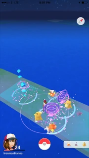 여기에는 네 개의 포케스탑(Pokéstop)들이 근접해 있어서 초기화 시점에 맞춰 몇 발짝만 걸어주면 쉽게 아이템을 공급받을 수 있다. 고라파덕(Psyduck), 잉어킹(Magikarp), 왕눈해(Tentacool) [아래 그림 참조]. 이 세 가지 포켓몬(Pokémon)은 이곳에선 귀찮다 싶을 정도로 흔하다. 그러나 진화시켜서 골덕(Golduck)과 갸라도스(Gyarados)를 얻고 싶다면 여기가 바로 최적의 장소. 이미 가진 자들은 스타더스트(Stardust)와 캔디(Candy)를 더 모으고 싶은 마음에 손가락을 바삐 움직인다.