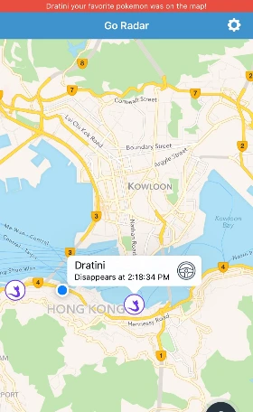 앱을 다운로드한 후 Settings->Global->Favorite Pokemon 에 관심 포켓몬을 설정.<Notifications>를 켜두면 지도에 관심 포켓몬이 나타난 위치와 언제 사라지는지를 표시해준다.