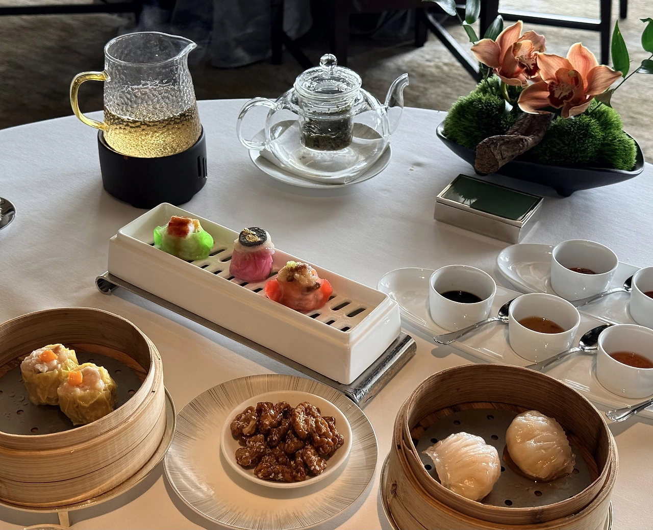 캔토니즈 스타일의 중식당이니 시우마이나 하가우 같은 딤섬 위주로 주문하면 되겠다 생각한 우리에게 재스민이란 이름의 서버분은 백과사전처럼 생긴 메뉴 책을 총 네 권 가져다주었다. 메뉴는 그림도 한 장도 없이 모두 글자로만 채워져 있었다. 결국 우린 재스민의 도움을 받아 육해공으로 두루 주문했고, 한입 사이즈의 음식들이 조르륵 줄지어 나오기 시작했다.