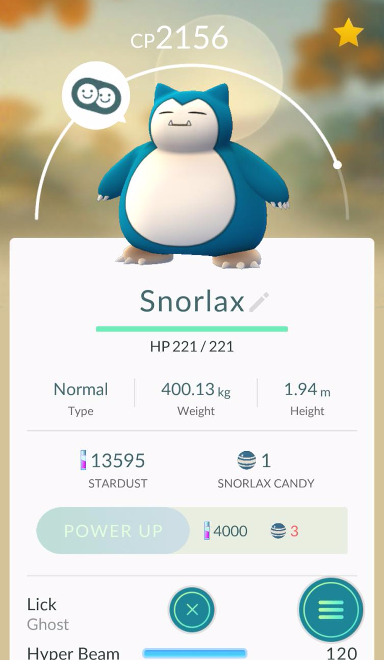 그래도 이 얼마나 반가운 소식인가. 업데이트가 올라오자마자 필자는 CP 2156 짜리 잠만보(Snorlax)를 버디로 삼았다. 버디 포켓몬을 설정하는 방법은 아주 간단하다. 포켓몬고 화면에서 하단에 위치한 자신의 아바타를 누르면 저널(Journal), 버디(Buddy), 그리고 커스토마이즈(Customize)의 세 가지 메뉴가 보인다. 이 중에 버디(Buddy)를 누르고 원하는 포켓몬을 선택해주면 된다. 필자의 잠만보(Snorlax)는 5km를 걸으면 포켓몬 캔디 하나가 생긴다. 10km를 걸은 후 파워업을 했더니 무려 43점이 추가되어 현재 CP 2199가 되었다.