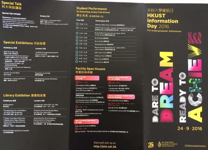 한국의 대학들이 대학입시 설명회나 예비대학 캠프 프로그램 등을 운영하는 것처럼, 홍콩의 각 대학들도 이맘때면 대학설명회를 준비하여 학교 캠퍼스 전체를 예비대학생들과 학부모들에게 전격 개방한다. 마침 오늘 홍콩과기대학(HKUST, Hong Kong University of Science and Technology)에서 대학설명회(Information Day)가 열린다기에 찾아갔다.