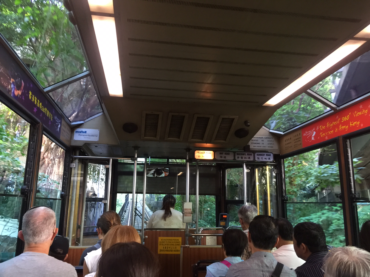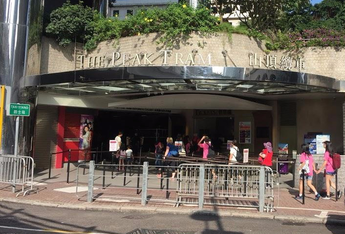 깜종(金鐘, Admiralty) MTR 역 C1 출구 앞에서 15번 버스를 타고 빅토리아 피크 정상까지 바로 올라갈 수도 있었다. 그러나 태풍경보 T1에도 불구하고 날씨가 아주 좋았고, 예상보다 일찍 도착한 덕분에 피크 트램(Peak Tram, 山頂纜車)을 오랜만에 타보기로 마음먹었다. 지하철 역에서 약 900미터를 걸어가 피크 트램 타는 곳(The Peak Tram Lower Terminus)에 이르렀다.