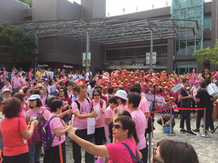피크 트램 안에서 핑크 티셔츠를 입은 행사 참가자들을 간간히 만날 수 있었는데, 정상(The Peak)에 올라와 보니 아이들과 함께 나온 부모님들, 회사나 병원에서 동료들과 함께 참가한 팀들, 그리고 다양한 연령층의 여성으로 이뤄진 참가자 그룹들이 온통 핑크빛이었다. 물론 필자도 핑크색으로 맞춰 입고 갔다.